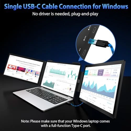 Return Policy Fast Delivery Trusted seller Triple Laptop Screen Extender, 14'' Dual Portable Extended Monitor (Windows & macOS), Plug & Play, 1080P USB-C Travel Monitor w/Kickstand & 270°Rotation, Tri Screen Monitor for 14-16'' Laptop Product Description Upgrade Your Workstation - Compatible with Windows and macOS systems, ideal for 14-16 inch laptops. This laptop screen extender allows you to seamlessly manage multiple tabs on one laptop, offering a clutter-free and organized workspace, suitable for multitasking. Support Extend/Mirror/2nd Screen/Portrait/Pre Mode. Each screen of this laptop monitor extender can be adjusted, turned off, and awakened individually. It can be both a 2nd screen and a triple monitor. Note: Your device needs support Thunderbolt 3.0/4.0 or USB 3.1 Type-C DP ALT-MODE. Effortless Plug & Play - One USB-C cable connection for Windows laptop and dual cable connection for macOS laptop. No driver or APP need. True plug-and-play! It provides you with perfect multi-screen real-time display and multi-screen independent display solutions. Ideal for easy on-the-go travel dual-monitor setups. Note: If your macOS laptop DOES NOT support 2-display connection, the monitor will only support mirror and 2nd screen mode. Vibrant Display Quality - With two 14-inch 1080P FHD IPS matte screens, it boasts 72% NTSC color gamut, 300 nits brightness, and 1000:1 contrast ratio, providing a broader view and more vibrant color. Display settings such as RGB, aspect, and contrast can also be adjusted by the separate OSD menu on each screen as you like. Flicker-free low blue light tech helps greatly reduce radiation damage and relieve eyestrain after a long-time watch. Flexible & Travel-friendly - Feature a 120° kickstand, 270° screen rotation, and individual screen adjustments for optimal viewing angles in any situation. The rubber pad on the bottom greatly reduces the slipping risk and fully supports the whole monitor extender. A stretchable back panel clips the monitor onto your laptop, moving together, and no need to reconnect. 3.19 lbs lightweight, 1.18-inch slim frame, perfect triple monitor for carrying around. Come Everything You Need- Package includes 1x Triple Portable Monitor, 2x USB-C to USB-C Cable, and 1x Power Adapter. always stands by our product and offers 1-year after-sale service and 24/7 online support. If you find the cable missing or are confused about the compatibility & connection, please contact us. Come and find us on the package or the user manual. Note: M1/M2/M3 chip, Pro 2012 and earlier, Air 2017 and earlier DO NOT support extend mode. Shipping Returns Payment Shipping Shipping is FREE to all addresses other than APO/PO boxes in the lower 48 states. All our stock ships from US-based warehouses. Shipped via USPS or UPS (depending on location and package weight) Unless stated otherwise, all orders will ship within 24-72 hours of your payment being processed. Check our feedback to see the great reviews of FAST shipping we offer. Returns Seller does not accept returns Payment We currently accept payment via eBay managed payments only. Once payment is cleared, we will dispatch your shipment within 1-3 business days. Please refer to the "Shipping" tab for more information regarding shipping speed to your destination.