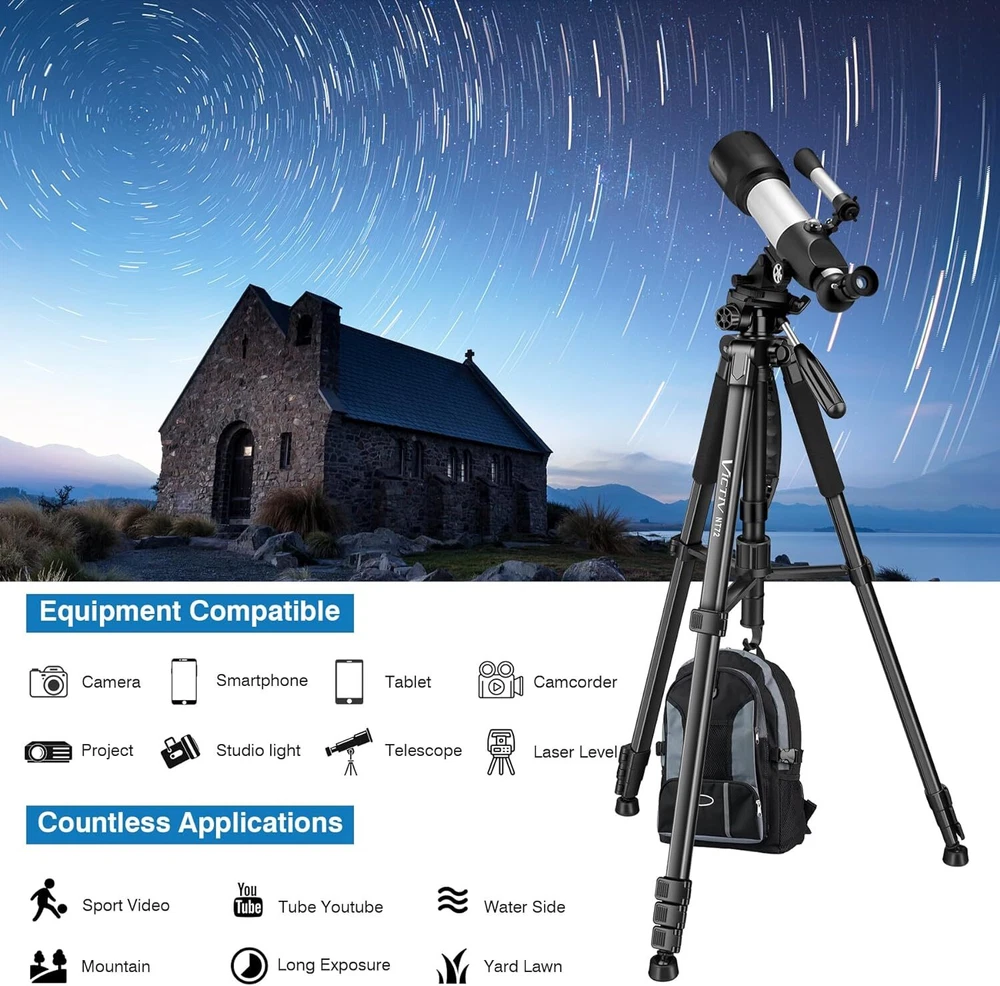 LIGHTWEIGHT FOR TRAVEL:Compactness when stored and weighs only 3.3 lbs/1.5 kilograms, easy to move around with a strapped carrying bag; Flip leg lock for SUPER FAST SETUP. Great for a vlogger and YouTuber UPGRADED SOLID CONSTRUCTION: Made of aluminum alloy, THICKER leg tube than the ordinary tripod, sturdy adequate for long exposure work and keep the camera steady. Using it in the field and yard for photos TRIPOD AND MONOPOD COMBINED UNIT: Takes about 5 seconds to go from the tripod into 55in monopod and reduces the weight of travel. Pay one, get two functions. Perfect for amateur photographers and travelers VERSATILITY OF FUNCTIONALIT: Height from 21"-72" can use it with binoculars for star viewing, family and home movies; 4-section column legs are able to stretch out to be tall enough to find the right height SMOOTH 3-WAY SWIVEL HEAD: 360 degree panning and titling with horizontally and vertically, easy to change directions at different angles. A EXTRA ARCA SWISS MOUNTING PLATE AS to easily swap cameras On Feb 4, 2025 at 18:28:52 PST, seller added the following information: