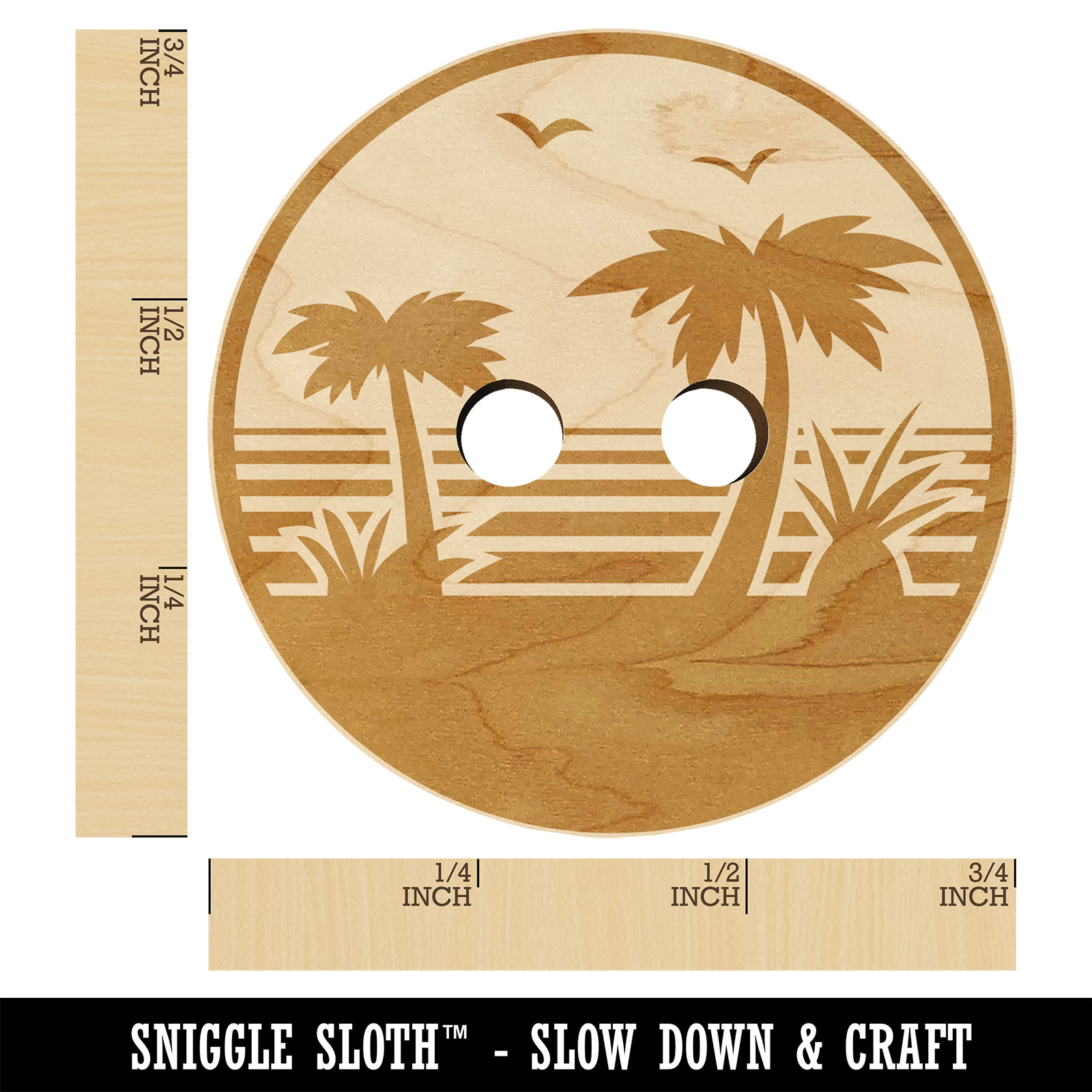 Tropical Beach with Palm Trees Wood Buttons for Sewing Knitting Crochet Craft