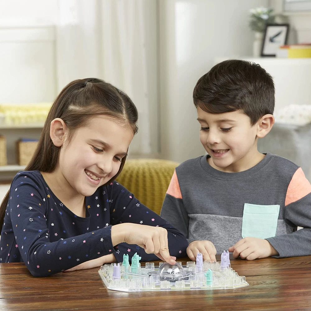TROUBLE GAME WITH BLUEY THEME: Kids can imagine having an adventure with Bluey and her family! This edition of the Trouble game is inspired by the popular animated series FUN WITH BLUEY'S FAMILY: It's a race through the backyard with the Heeler family! Kids can play as Bluey, Bingo, Chilli, or Bandit as they try to get all of their pegs to the Finish Zone first POP THE DIE: Players pop the iconic Pop-O-Matic die roller and take different actions depending on the number shown on the die SPECIAL SPACES ON THE GAMEBOARD: Special spaces -- a Scooter space, Magic Xylophone space, and Magic Asparagus space -- encourage interactivity and add to the excitement of gameplay FOR BLUEY FANS: This Trouble Game: Bluey edition is a fun game for boys and girls ages 5 and up, and makes a great birthday gift for Bluey fans Inspired by the Bluey animated TV series, this edition of the Trouble board game combines Trouble gameplay with Bluey adventures. Kids can choose to play as Bluey, Bingo, Chilli, or Bandit and imagine racing around the backyard with the Heeler family as they move their character pegs around the gameboard. The first player to get all 4 of their pegs to the Finish Zone wins! Certain spaces on the gameboard encourage interactivity and help players advance on their journey. Like with the classic Trouble game, it includes the fun Pop-O-Matic die roller that kids love to press. The Trouble: Bluey edition board game is so much fun to play. It makes a great gift for Bluey fans and kids 5 and up. Hasbro Gaming and all related trademarks and logos are trademarks of Hasbro, Inc. BLUEY TM and BLUEY character logos TM and (R) Ludo Studio Pty Ltd 2018. Licensed by BBC Studios. BBC logo TM & (R) BBC 1996.