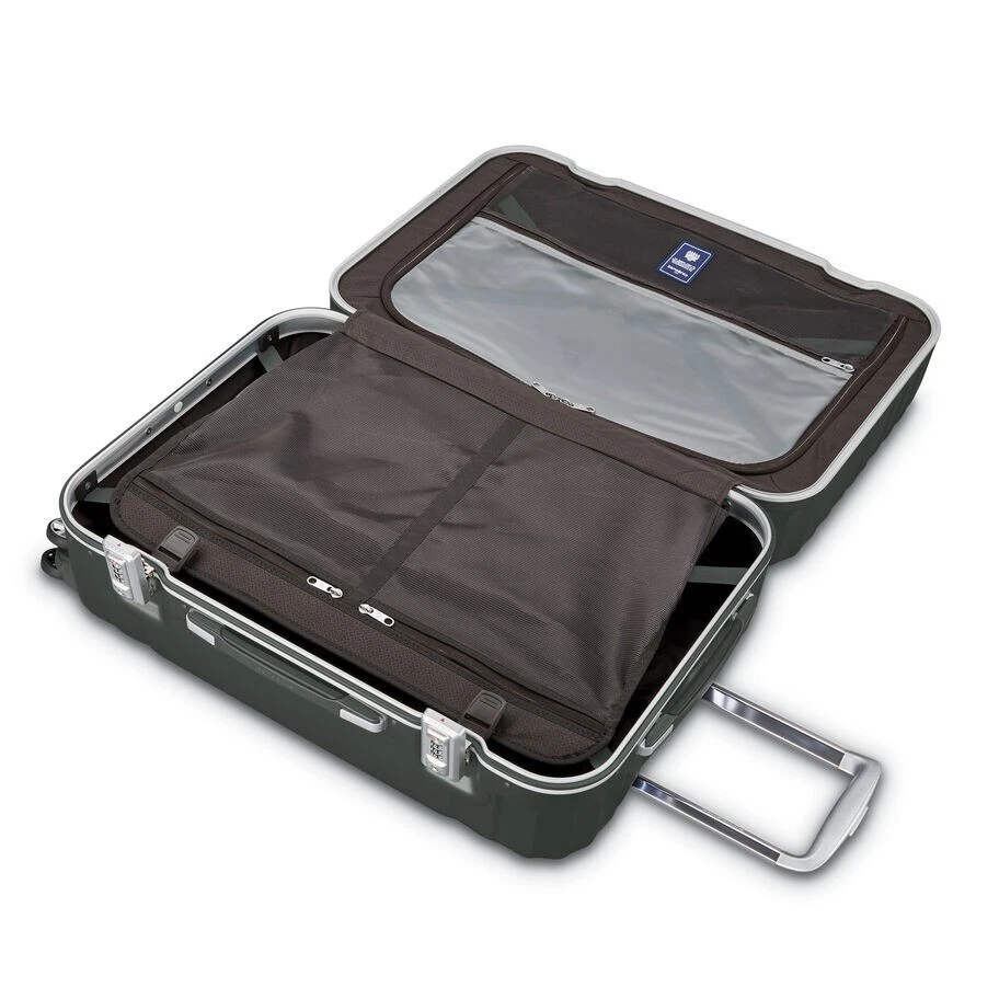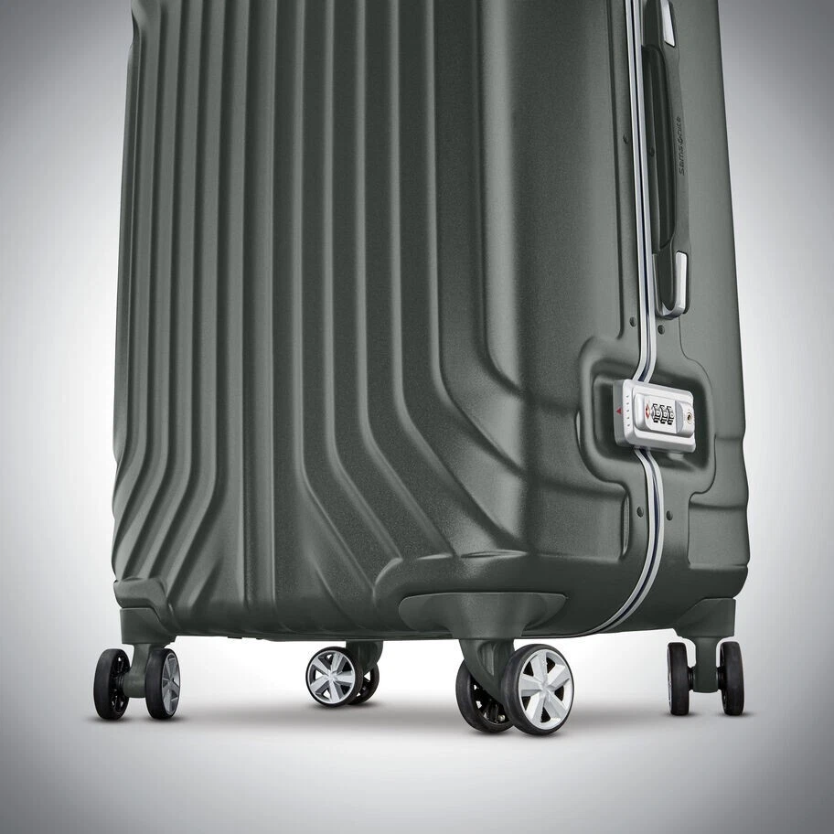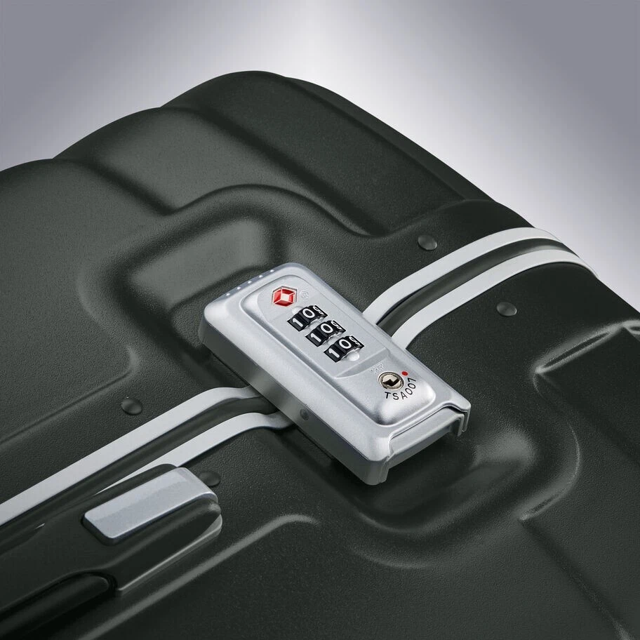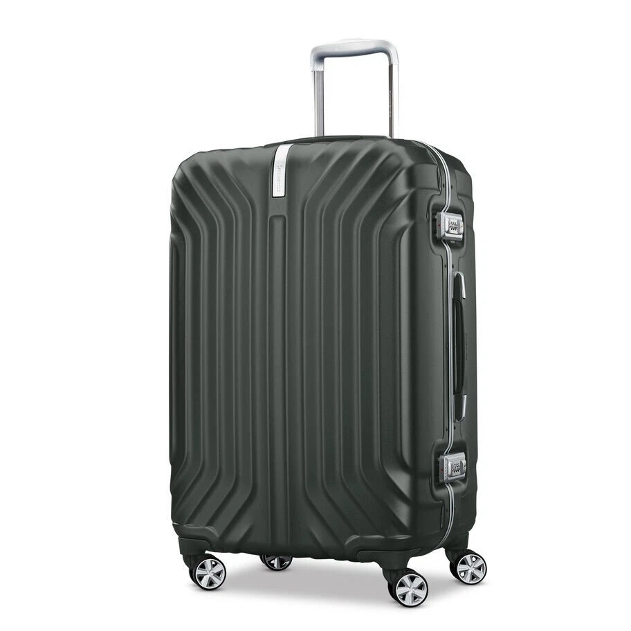 INFORMATION Retail price: $339.99 Can provide pictures or videos displaying product if needed Contact me for any further questions! SPECIFICATIONS 27.9in H x 18.5in L x 11.6in W DESCRIPTION Samsonite proudly presents Tru-Frame, a brand new hard-shell frame luggage collection. 100% Polycarbonate construction Four multi-directional dual spinner wheels for effortless mobility Ultra-protective security frame with sealed gasket closure features and integrated TSA combination lock that provides peace of mind when checking cases through security Deluxe interior featuring two divider panels, two cross-straps and plenty of organizational pockets