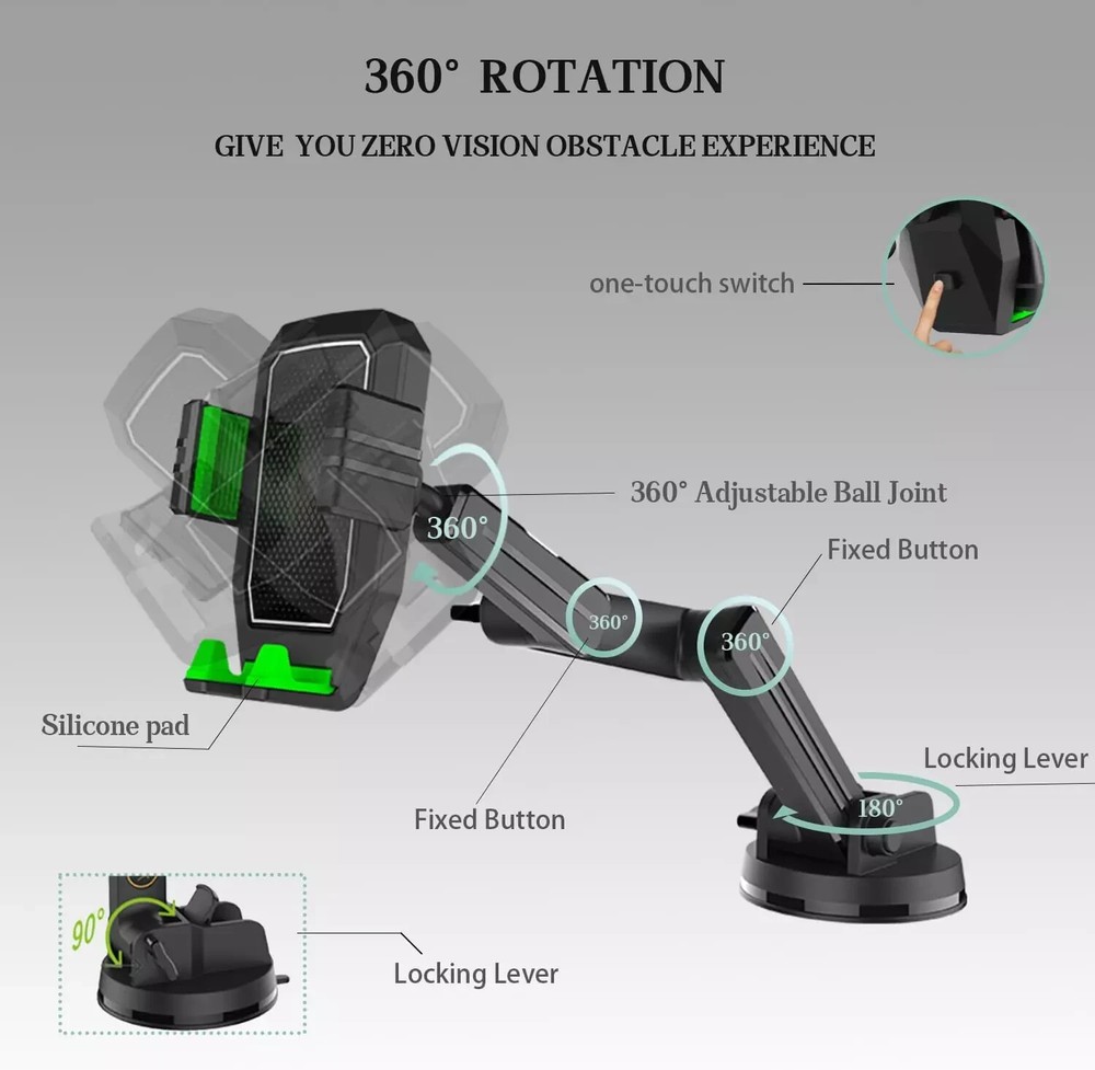 Truck Phone Holder Mount,Heavy Duty Phone Holder for Truck Dashboard Windshield,16.9 inch Long Arm, Strength Suction Cup Anti-Shake,Compatible with All Phone and Pickup Truck,Semi Truck Especially Designed for Trucks:With 16.9 inches long arm, this truck phone mount can use on different surfaces of heavy-duty vehicles, such as bucket trucks, SUVs, Vans, Buses, and heavy-duty trucks, whether you need to use it on the windshield,the dashboard.hether you need to use it on the windshield,the dashboard. Strong Adhesive Suction:Equipped with strong sticky gel pad that provides strong suction on smooth surfaces without leaving any residue. It won't come off even when turning, bumping or driving at high speeds. Note: If the suction cup loses its grip, wash it with warm water, then air dry to restore its adsorption. 3-Point Long Arm And 360°View Angle:It also includes a 16.9 INCH LONG with 3-point arm, where each arm can be adjusted along with a fixed button for each, And all can be rotated 360° for optimal viewing angle. During driving, you can adjust this car cell phone holder to avoid obstructing the sight and ensure driving stability and safety. One-Hand Operation:This cell phone car mounts designing with a back release button, which is easy to clamp and release. It is padded with striped silicone to protect your phone from scratching or dropping off.It can open width is between 2.5 - 4.1 inches, suitable for most smartphones. Please note that the phone case must be thinner than 0.47 inches. We are constantly improving the function and design of our products, so that more humane products bring you a good life experience, this is the philosophy of the design team from WUITIN! Especially Designed for Trucks:With 16.9 inches long arm, this truck phone mount can use on different surfaces of heavy-duty vehicles, such as bucket trucks, SUVs, Vans, Buses, and heavy-duty trucks, whether you need to use it on the windshield,the dashboard.