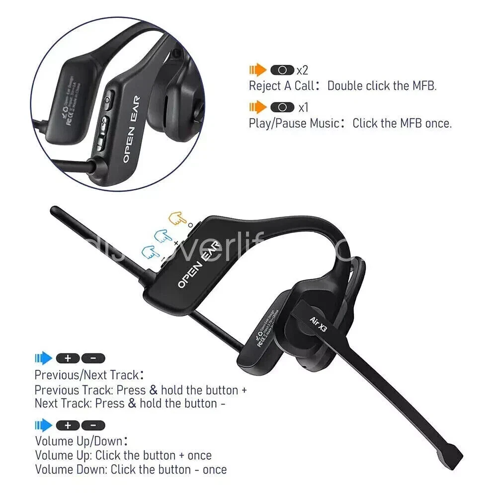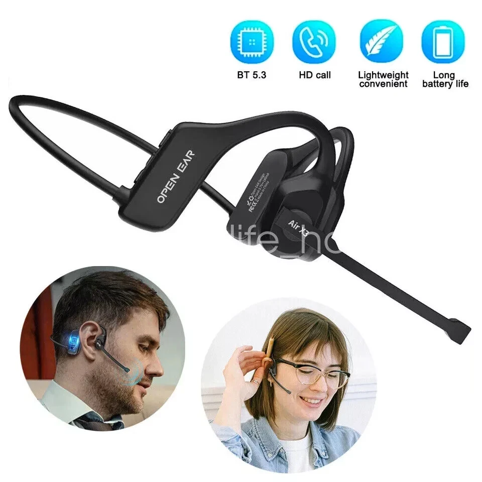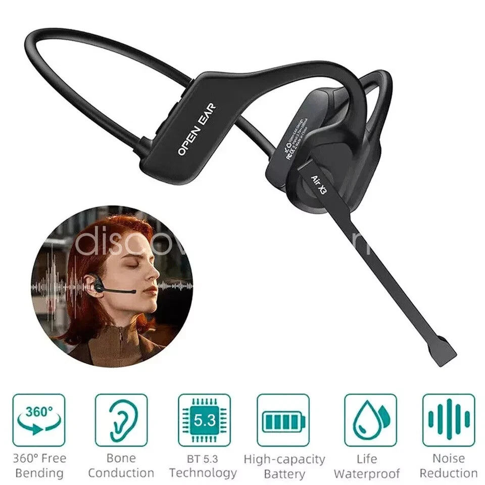 Free eBay listing template designed by dewiso.com Trucker Bluetooth 5.3 Wireless Headset With Noise Cancelling Mic For Phone PC US Features and further details Features 1. [AIR CONDUCTIVE HEADPHONES] HANGING EAR AIR CONDUCTIVE HEADPHONES FREE YOUR EARS, Compared with the traditional in-ear headphones, this model adopts the open-ear design, which doesn't need to plug the headphones into your ears. Open ear headphones wireless bluetooth not only keep your ear canal clean and won't damage your eardrums, but they also don't cover your ears so you can be aware of your surroundings, avoid potential dangers and stay safe! 2. [Detachable Noise-Canceling Microphone] The open ear headphones are equipped with DSP noise-canceling technology to ensure clear calls and a great music experience. The detachable boom arm is magnetically designed and can be rotated 270° to maximize your voice pickup, thus improving call quality! In addition, the bluetooth headset with microphone has Φ15.4mm driver speaker, it is bigger than other headphones, the sound will be clearer and louder. 3. [All Day Lightweight and Comfortable] The wireless headset is ergonomically designed. The ear hooks are made of silicone, skin-friendly and comfortable, fit your ears firmly and fixed without moving or bouncing, you can wear them for a long time without causing ear pain. Bluetooth headset with microphone without deformation 360° bending memory wire, twist at will without breaking. Easier to carry, you can hang it around your neck and take it anywhere you want. 4. [Built-in Upgraded Bluetooth 5.3] The wireless headphones with microphone uses the latest Bluetooth 5.3 technology, which provides faster signal transmission, more stable connection and no delay. Wearing open headset you not only don't need to worry about disconnecting while driving, working, outdoor sports, online learning, but also can wake up your phone's voice assistant with just three clicks of the "M" button. 5. [PROFESSIONAL IPX5 SPORTS WATERPROOF】 Open headset wireless bluetooth with microphone has an IPX5 waterproof rating, which is perfect for those who like sports, running, biking, hiking, skiing, snowboarding, and exercising! Bluetooth headset with noise canceling microphone is the best partner for office, conference, truckers, online teaching, call center, home work. (Note: It only protects against small amounts of sweat and rain, not recommended for swimming!) 6. [Durable and Long Life】 The laptop headset with microphone features multi-function buttons for easy control of play, pause, activate voice assistant and answer calls. Long battery life for open-ear headphones, built-in high capacity 180mAh rechargeable lithium-ion battery, 2 hours charging and up to 6 hours playback time. It is more durable, practical and convenient. You can enjoy a superior audio experience. 7. [MULTI-DEVICE COMPATIBILITY] The open-ear headphones with microphone are widely compatible with cell phones/PCs/computers/laptops/tablets/Ipads/watches and so on. It is the best partner for office, conference, truck driver, online teaching/learning, call center, work from home. Specification Product name: bluetooth headset Product Type: Headband Product Model: X3 Bluetooth version: 5.3 Transmission distance: 10 meters Bluetooth protocol: A2DP AVRCP HFP HSP Battery capacity: 180mAh Operating time: 6H Charging time: 2H Standby time: 200H Charging port: type-c Output power: 66mW Frequency Response: 20Hz-20000KHz Speaker size: 15.4mm Speaker impedance: 30Ω Product Material: ABS Product color: black Package Included 1* Bluetooth headset 1* User Manual 1* Type-c cable Please Note: 1.According to the light color may vary! 2.Due to manual measurement, please allow a slight 1-2cm difference! 3.Thank you for your understanding and concern, wish you have a pleasant shopping experience! Contact us We can be contacted at any time through eBay messages if you have any questions, comments or product requests. We will respond to you within 24 hours and do our best to help you out! We encourage our customers to contact us with any questions or concerns! We'd like to be sure you are completely satisfied with your purchase. THANKS FOR COMING :)