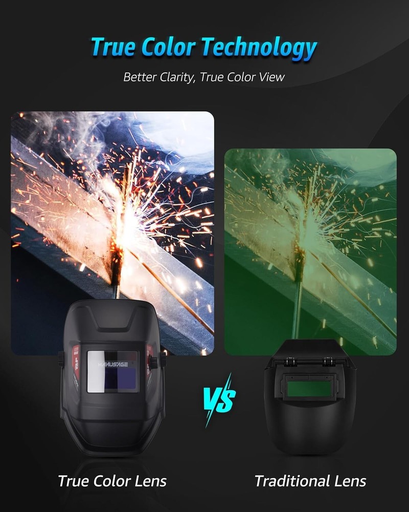Auto Darkening Welding Helmet with True Color, Solar Power, 4 Sensors