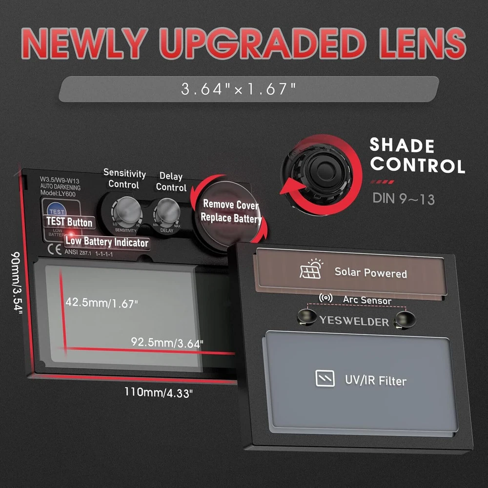 $ 47.52YESWELDER Welding Helmet, Solar, TIG/MIG/Arc/Grind Auto Darkening True Color