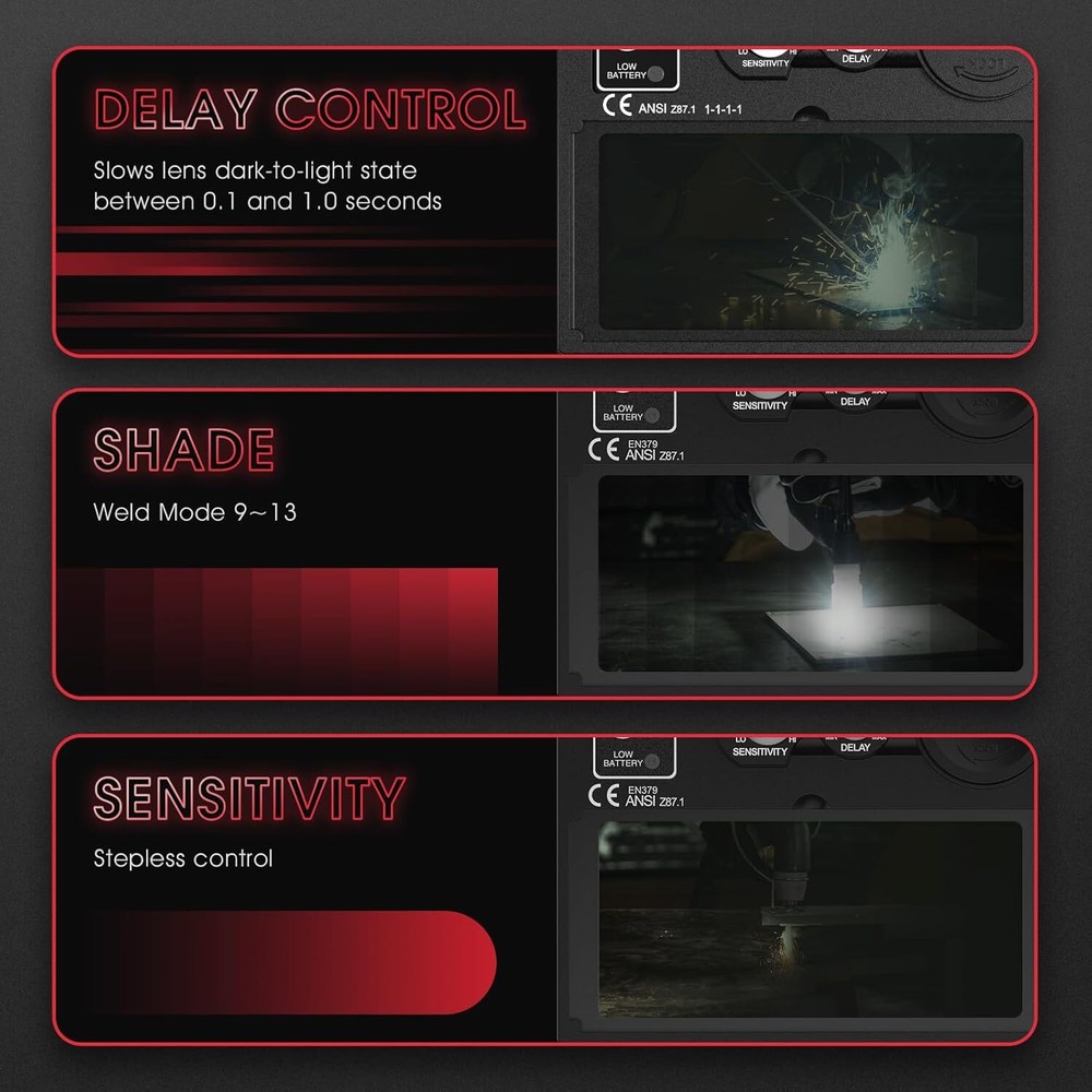 YESWELDER Auto-Darkening Welding Goggles Shade 4-13 with Grind Mode Checkerboard Design