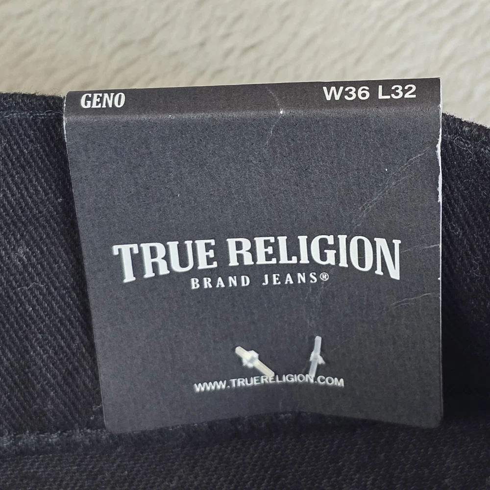 True Religion Geno No Flap SN Relaxed Slim Fit Jeans Men 36x32 Body Rinse Black ACTUAL FIT: 36X31.25" MSRP: $149 PLEASE SEE PHOTOS FOR EXACT DETAILS AND CONDITION OF THE ITEM. ALL MEASUREMENTS ARE TAKEN FLAT. PLEASE COMPARE MEASUREMENTS OF SIMILAR ITEM THAT YOU OWN TO ENSURE CORRECT FIT. WAIST: 18" HIPS: 22" INSEAM: 31.25" RISE: 12" CUFF WIDTH: 8" CONDITION: NEW WITH TAGS SHIPPING: U.S. SHIPPING IS USPS GROUND ADVANTAGE. INTERNATIONAL SHIPPING IS Ebay GLOBAL SHIPPING PROGRAM HANDLING TIME: 2 Full business days. Usually ships next day after purchase excluding weekends or holidays. FEEDBACK: Please leave feedback once you receive the item. If there is an issue with the item, please contact me and let me correct the issue before leaving feedback