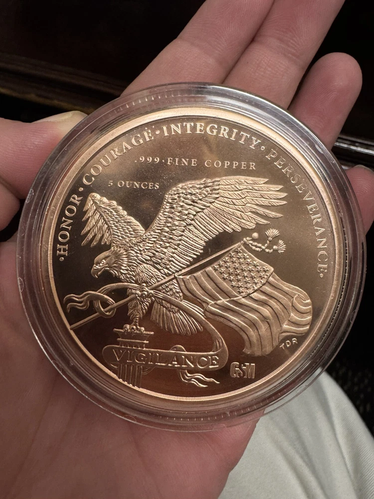 This Trump 2020 5 oz .999 Copper BU coin commemorates the 45th President and comes in a capsule. The round coin is made of high-quality copper with a fineness of 0.999. It is a perfect addition to any collection of coins and paper money. This item is a must-have for any fan of President Trump or collector of commemorative coins.