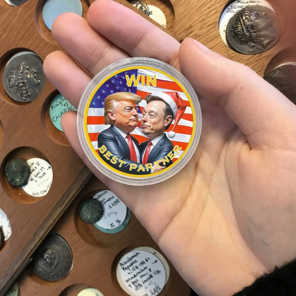 Trump Musk Christmas Cameo Colourful Gold Edge Commemorative Coin Features: 1. craftsmanship: meticulously crafted metal made of durable materials long-lasting collection value. 2. Unique and rare design: The exquisite design characterized by unique makes it a valuable supplement to collection. 3. Limited production, providing exclusivity and increasing its value as a rare collectible. 4. Great idea: Perfect for enthusiasts, enthusiasts, or as an unforgettable for . 5. Including protective cover: Equipped with a protective cover, it can the state of the and any potential damage. Product Description: Memorial Partner Metal Memorial suitable for collection and remembrance ! Material: metal Color: as the picture shows, (Due to the difference between different monitors, the picture may have slight color difference. please make sure you do not mind before ordering, Thank you!) Package weight: 30g Package size: 10x5x1cm,(Please allow 1-3mm error due to manual measurement. please make sure you do not mind before ordering.)