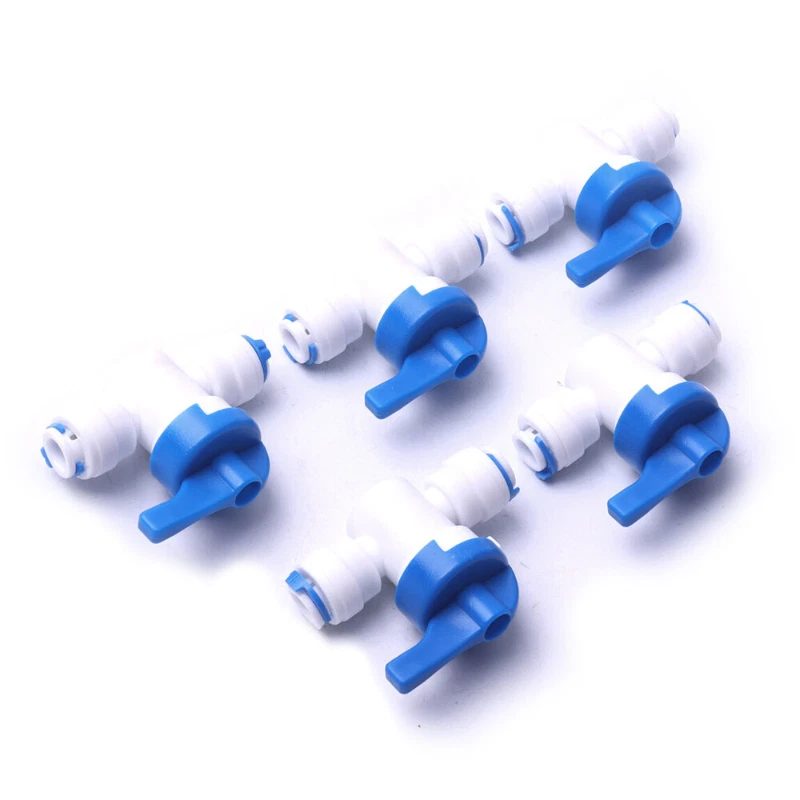 Features: 1/4" Quick connect Water purifier control switch Specification: Caliber:1/4"(appox 6.5mm) color:Blue and White Package Included: 5*Ball valve Switch
