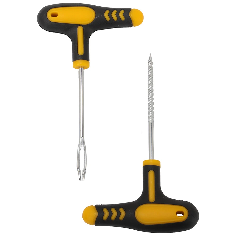 Car Tubeless Tyre Tire Puncture Repair Plug Repair Kit Needle Patch Fix Tool Set Details Car Tire Repair Tools Kit with Rubber Strips Tubeless Tyre Puncture Studding Plug Set for Truck Motorcycle Features: 1.Emergency Vehicles Puncture Repair Kit for Tubeless Tires. 2.The Car Tyre Repair kit will allow you to mend punctures quickly and effectively. 3.Durable Plastic Handles providing great grip. 4.Essential for Vehicles with Tubeless Tires. 5.This Rasper Tool allows Tire hole widening and cleaning. 6.Needle Tool allows Tyre Rubber Strip insertion. 7.Useful Tool to keep in the car with spare wheels. How to use: 1.Remove object that causedthe puncture. Insert the rasp tool into hole and slide up and down to roughenand clean the inside of the hole 2.Coat needle tool withrubber cement and slide up and down into hole to lubricate area. 3.Insert a repair plughalfway through slit of needle. 4.Gently push needle throughhole until about half inch is left of the plug. 5.Pull split eye tool leavingthe plug inserted into hole. 6.Trim excess plug stickingout and let dry. Inflate tire and test for leak Package Content: Emergency Tubeless Tyre Tire Puncture Repair Tool Kit includes: 1x Rasper Tool. 1x Needle Tool. 1x Rubber Solution. 5x repair Strips. On Jun 18, 2024 at 00:23:57 PDT, seller added the following information: On Aug 13, 2025 at 23:03:30 PDT, seller added the following information: