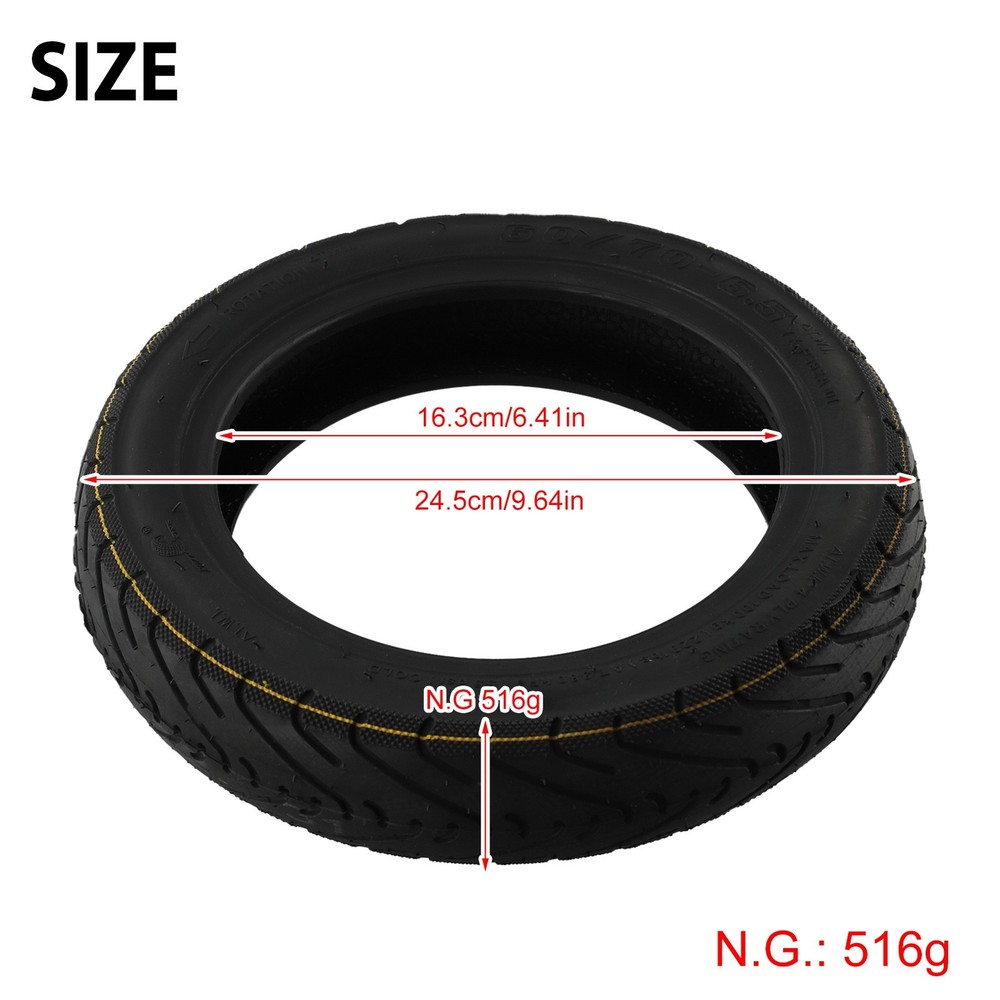 Product Description : It is illegal to ride electric scooters on public roads, pavements, or cycle paths. They are intended only for use on private land with the owner's permission Description: *Brand new and high quality *Made of high quality material, and practical to use *60/70-6.5 Tubeless tire, fit for Ninebot Max G30/G30E/G30LP Electric Scooter *Not easy to deform, can be use for long -time Specification: *Material: Rubber *Color: Black (As Pictures Show) *Weight: About 520g *Size: 245*245*55mm *Model: 60/70-6.5 Package Includes: 1 x Tubeless Tire 1 X Gas Nozzle Note: 1. The real color of the item may be slightly different from the pictures shown on website caused by many factors such as brightness of your monitor and light brightness. 2. Please allow slight manual measurement deviation for the data. Payment Payment must be completed within 5 days. If you have any problems about payment, please contact us via ebay message. Delivery details We only ship to confirmed ebay Order addresses. Please comfirm that your Order address is in line with your shipping address. Please kindly note that the c ombined shipping is not provided because the shipping fee is calculated by weight. Also, the each additional item means exactly the the same color and size. It takes about 7 -15 working days to US; about 10-30 working days to other countries. Transit time may be a little delayed because of the bad weather and customs inspection . If you do not receive your item within 30 working days since payment finished, please contact us immediately for further assistance. Contact us We strive for 100% customer satisfaction! Positive Feedback is very important to us. If you have any questions, p lease feel free to contact us via "Ask seller a question" . We will reply your email within 24 working hours.