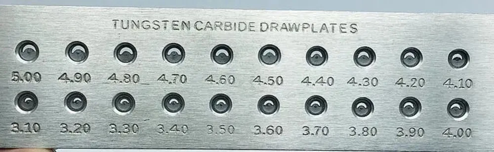 Description: 100% brand new and high quality Type:Jewelry Tools & Equipment Material:Tungsten Carbide Wire Drawplat Quantity: 1 pc Note: Please allow 1-2mm error on drawplate. pls make sure you do not mind before you bid. Package includes: Tungsten Carbide Wire Drawplate x 1