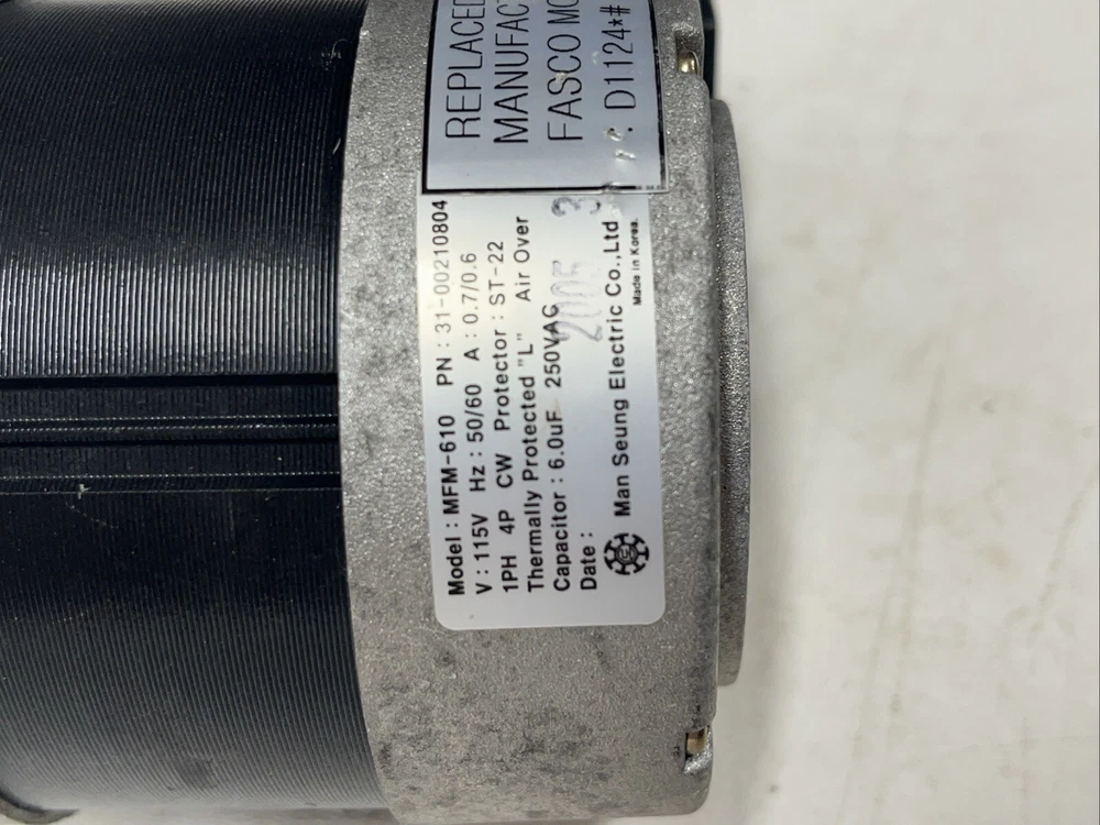 Turbo Air 31-00210804 Fan Motor, Evaporator MFM-610 115v CW .7amp 250v .6amp. Condition is Used. Shipped with USPS Ground Advantage.