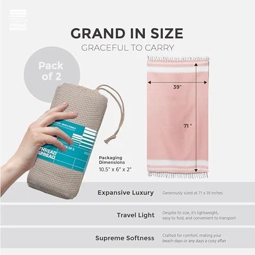 Return Policy Fast Delivery Trusted seller Turkish Cotton Beach Towels 2 Pack - 39" x 71" Quick Dry Sand Free for Adults - Oversized, Lightweight, Thin, Sand Resistant for Girls - Quartz Pink Chambray Product Description Super Absorbent & Quick Dry Beach Towel: Embrace the sun’s warmth and ocean’s embrace with ’s Tidal Luxe Peshtemal Beach Towels. Our 100% cotton beach towels are pre-washed for natural softness and absorb water from your body in seconds. Unlike those bulky towels, our thin beach towel are quick drying and doesn’t leave a damp smell behind. Forgot to put them in the wash after your beach trip? Not a problem anymore! Completely Sand-Resistant 100% Cotton Beach Towels: Unlike thick towels that hold onto the sand, our lightweight beach towel has a smooth surface which makes it easy to brush away the sand. Perfect travel beach towel for all your summer needs! Available in three variants: Herringbone, Chambray, and Diamond to fit your lounging style Lightweight & Compact Beach Towel Set: Comes in a bulk pack of 2 (39” x 71”) and a netted bag, our turkish beach towel for adult don’t take up too much space in the luggage or wardrobe. They roll up to the smallest size possible and are SO convenient to pack and store. Best for your next beach getaway! Use Them However You Want: Our sandproof & oversized beach towel can easily double down as a surf towel, gym towel, pool towel, hand towel, camping towel, bathroom towel, kids beach towel, picnic towel, etc. Or you can wrap them around as a blanket, sarong, or a shawl. Whatever purpose you have, our cute beach towel fulfills them! Wash & Care Instructions: Wash our oversize large beach towel in a machine in cold water. Tumble dry low. Our striped beach towels don’t shrink or lose their color. T is Zero fraying, pilling, or threads coming loose. Instead, our cotton beach towels maintain their softness and color—and last for a long time to come. Not satisfied with our beach towels? Send them back for an instant refund/return on within 30 days Shipping Returns Payment Shipping Shipping is FREE to all addresses other than APO/PO boxes in the lower 48 states. All our stock ships from US-based warehouses. Shipped via USPS or UPS (depending on location and package weight) Unless stated otherwise, all orders will ship within 24-72 hours of your payment being processed. Check our feedback to see the great reviews of FAST shipping we offer. Returns Seller does not accept returns Payment We currently accept payment via eBay managed payments only. Once payment is cleared, we will dispatch your shipment within 1-3 business days. Please refer to the "Shipping" tab for more information regarding shipping speed to your destination.