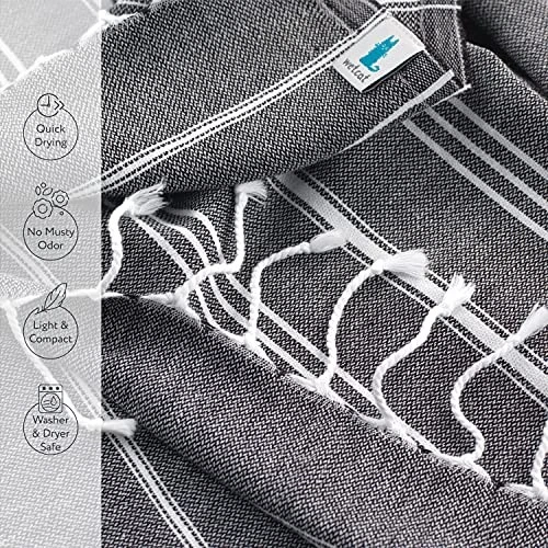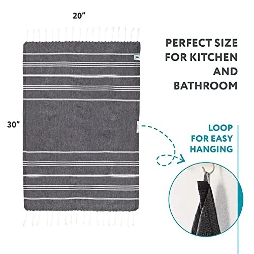 Return Policy Fast Delivery Trusted seller Turkish Hand Towels with Hanging Loop, Set of 2 (20" x 30") 100% Turkish Cotton, Pre-Washed, Quick Drying, for Kitchen or Bathroom - Black Product Description REFRESH YOUR DÉCOR: From a farmhouse kitchen to a boho bathroom, our stylish hand towels breathe new life into any room. With 28 color options to choose from, you’ll find the perfect complement to your existing décor. EVERYDAY FUNCTIONALITY: Measuring 20” x 30,” our Turkish towels were specially designed for your kitchen and bathroom. The compact size makes them easy to store in a drawer, while the hanging loop offers grab-and-go convenience. DESIGNED FOR DURABILITY: Made in Turkey with 100% premium Turkish cotton, our bathroom hand towels are as durable as they are absorbent. Prewashed for minimal shrinkage, they’re washer and dryer-safe for long-lasting use and everyday functionality. NO MUSTY ODOR: Incredibly convenient, our quick dry kitchen hand towels won’t harbor musty odor. You’ll save energy and water by washing them less often, and since we use OEKO-Tex certified natural dyed yarn, they’re safe for you and the environment. ENDLESS VERSATILITY: The perfect gift for everyone on your list, our Turkish kitchen dish towels double as guest, face and gym towels. They make stylish placemats, napkins or serving accessories, or you can use them to wrap baked goods or cover hot rolls. Shipping Returns Payment Shipping Shipping is FREE to all addresses other than APO/PO boxes in the lower 48 states. All our stock ships from US-based warehouses. Shipped via USPS or UPS (depending on location and package weight) Unless stated otherwise, all orders will ship within 24-72 hours of your payment being processed. Check our feedback to see the great reviews of FAST shipping we offer. Returns Seller does not accept returns Payment We currently accept payment via eBay managed payments only. Once payment is cleared, we will dispatch your shipment within 1-3 business days. Please refer to the "Shipping" tab for more information regarding shipping speed to your destination.