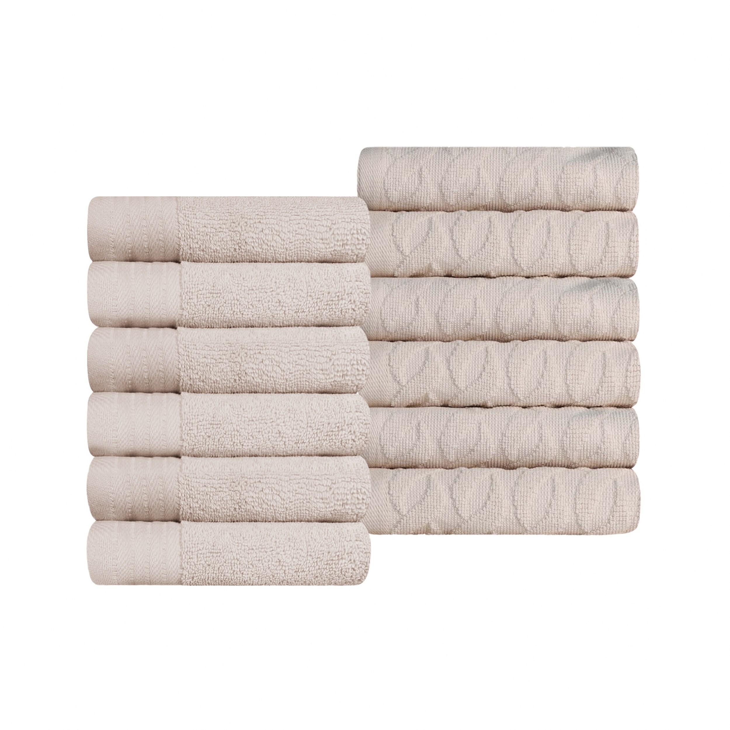 Add comfort and style to your master bathroom, powder room, or guest bathroom with the Turkish Cotton Herringbone Medium Weight Towel Set by Superior. Crafted from luxurious Turkish Cotton, each towel in this set is designed to help you dry quickly. Keep yourself warm and cozy after each shower or bath with these ultra-plush and fluffy towels. This beautiful towel set is perfect to use when pampering yourself, or makes the perfect set to reserve for guests. Features:Set Includes: 12 face towels/ washcloths Towel set includes 2 unique designs: solid and sculpted Crafted from Turkish CottonTerry loop Cotton weave is highly absorbent to get you dry quickly Single-ply thickness for added comfort and durability Soaks up water faster than other cotton towels Modern, traditional, or transitional Free Shipping Over $49.99* Details Turkish Cotton Herringbone and Solid Washcloth Towel Set by Superior Product Description: Add comfort and style to your master bathroom, powder room, or guest bathroom with the Turkish Cotton Herringbone Medium Weight Towel Set by Superior. Crafted from luxurious Turkish Cotton, each towel in this set is designed to help you dry quickly. Keep yourself warm and cozy after each shower or bath with these ultra-plush and fluffy towels. This beautiful towel set is perfect to use when pampering yourself, or makes the perfect set to reserve for guests. Features: Set Includes12 face towels/ washcloths Towel set includes 2 unique designssolid and sculpted Crafted from Turkish Cotton Terry loop Cotton weave is highly absorbent to get you dry quickly Single-ply thickness for added comfort and durability Soaks up water faster than other cotton towels Modern, traditional, or transitional style We're committed to make products safer for you and safer for the world; STANDARD 100 by OEKO-TEX certified; Every component of this product has been tested and verified free of harmful substances and produced sustainably For the most luxurious results, we recommend to wash with like colors, tumble dry low, and remove promptly from the dryer. Please follow care label instructions for best results Each face towel/ washcloth measures 12 inches wide by 12 inches long