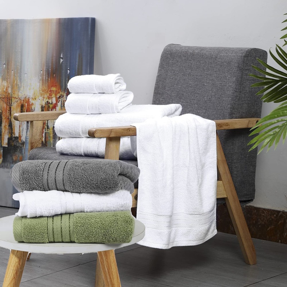 White Bath Towel Sets, Premium Turkish Cotton Large Towel Set for Bathroom, 650 GSM Luxury Bathroom Sets Pcs with 2 Bath Towels, 2 Hand Towels, 2 Washcloths, Ultra Soft and Water Absorbent Extreme Durable & Excellent Quality: This towel sets are made of 100% Turkish cotton, woven to 650GSM, so it is ultra-soft and durable. It comes with a double stitch hem for enhanced durability & strength. Please Enjoy the ultra-soft plush, fluffy premium bath towels. The Hotel & Spa quality towels for bathroom decor sets accessories to provide the home a luxurious & elegant bathing design. Absorbency & Quickly Dry: With zero-twist construction --a sophisticated spinning process, our bath towels could quickly dry, dry 20-25% faster compared to a conventional towel which makes the bath towel set ultra-absorbent! They are perfect bath clothes for adults, kids, and even toddlers and babies who enjoy huge, soft embraces. Multi-usage: You can use these towels for bath as beach bathroom decor, bathroom decor sets accessories, etc. in your bathroom, hotel & spa, kitchen, gym, and anywhere you need. Care Notice:Machine wash on gentle cycle. These towels are easy to care for and dry quickly for everyday use. Minor fading or lint is normal for natural materials. For best results, soak in water with vinegar or baking soda before washing to lock in color and reduce lint. Avoid high heat and fabric softeners—they can cause excess lint and reduce absorbency. Package Includes: 2 extra-large bath towels (27 inches x 54 inches), 2 Hand Towels (13 inches x 30 inches), 2 Washcloths (13 inches x 13 inches). We are here to provide satisfaction to our customers. Premium cotton towel set Shipping We offer FREE shipping on all orders! We ship within Three business days of payment, usually sooner. We use a selection of shipping services such as UPS, FedEx, USPS etc. We only ship to the lower 48 states, no APO/FPO addresses or PO Boxes allowed. Local pickups and combined shipping options are not provided at this time. Return You can return a product for up to 30 days from the date you purchased it. Any product you return must be in the same condition you received it and in the original packaging. Please keep the receipt. Payment We accept payment by any of the following methods: PayPal Please pay as soon as possible after winning an auction, as that will allow us to post your item to you sooner! Feedback Customer satisfaction is very important to us. If you have any problem with your order, please contact us and we will do our best to make you satisfied. Contact Us If you have any queries, please contact us via ebay. We usually respond within 24 hours on weekdays. Please visit our eBay store to check out other items for sale! Thank you for shopping at our store.