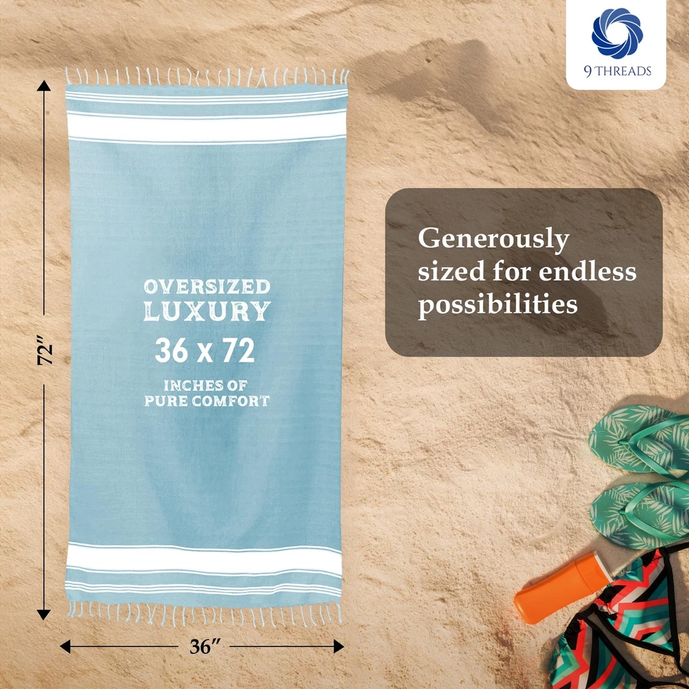 Cotton Turkish Beach Towel Towels Oversized 36"x72" Pool Absorbent Extra Large Quick Dry Sand Travel Towel (Aqua Blue, 2 Pack) 🌴 Sand-Free, Quick-Drying & Stylish in Every Shade: Enjoy the beach without the mess—Turkish towels are sand-resistant and fast-drying, making them your perfect companion for sun, surf, and travel. Available in vibrant, eye-catching colors and bundle options of 2, 4, or 6, they suit every style, space, and occasion—whether for family trips, bathroom upgrades, or thoughtful gifting. 💧 Ultra-Absorbent & Lightweight Travel Towel: Designed for maximum functionality, beach towels quickly absorb moisture while remaining incredibly lightweight and easy to carry. Whether you're drying off after a swim, wiping down after a workout, or relaxing at the spa, these fast-absorbing towels provide comfort without bulk. Their lightweight nature makes them ideal as a portable beach towel, gym towel, or travel towel for vacations and road trips.` ✨ Soft, Prewashed & Incredibly Versatile: Each towel is prewashed for lasting softness and reduced shrinkage, offering a luxurious feel from day one. Designed for all-in-one functionality, it effortlessly transforms into a yoga towel, pool towel, sarong, picnic blanket, boho throw, or travel wrap—a stylish and practical essential for home, beach, gym, or on-the-go adventures.` 🎨 Boho-Chic Design That Packs Light: Featuring a timeless striped pattern with fringe tassels, towels add a touch of bohemian elegance to any space—from your bathroom to the beach. Despite their generous 36” x 72” size, they fold down compactly, making them the perfect travel towel for your beach bag, carry-on, or bathroom shelf without sacrificing style or space. 🧺 Easy Care Instructions: Machine wash cold (30°C max) with non-chlorine bleach if needed. Tumble dry low, iron at medium temp. Built for everyday durability and easy maintenance. Cotton Turkish Beach Towel with Bag Towels Oversized 36"x72" Pool Absorbent Extra Large Quick Dry Sand Travel Towel (Aqua Blue, 2 Pack) Shipping We offer FREE shipping on all orders! We ship within Three business days of payment, usually sooner. We use a selection of shipping services such as UPS, FedEx, USPS etc. We only ship to the lower 48 states, no APO/FPO addresses or PO Boxes allowed. Local pickups and combined shipping options are not provided at this time. Return You can return a product for up to 30 days from the date you purchased it. Any product you return must be in the same condition you received it and in the original packaging. Please keep the receipt. Payment We accept payment by any of the following methods: PayPal Please pay as soon as possible after winning an auction, as that will allow us to post your item to you sooner! Feedback Customer satisfaction is very important to us. If you have any problem with your order, please contact us and we will do our best to make you satisfied. Contact Us If you have any queries, please contact us via ebay. We usually respond within 24 hours on weekdays. Please visit our eBay store to check out other items for sale! Thank you for shopping at our store.