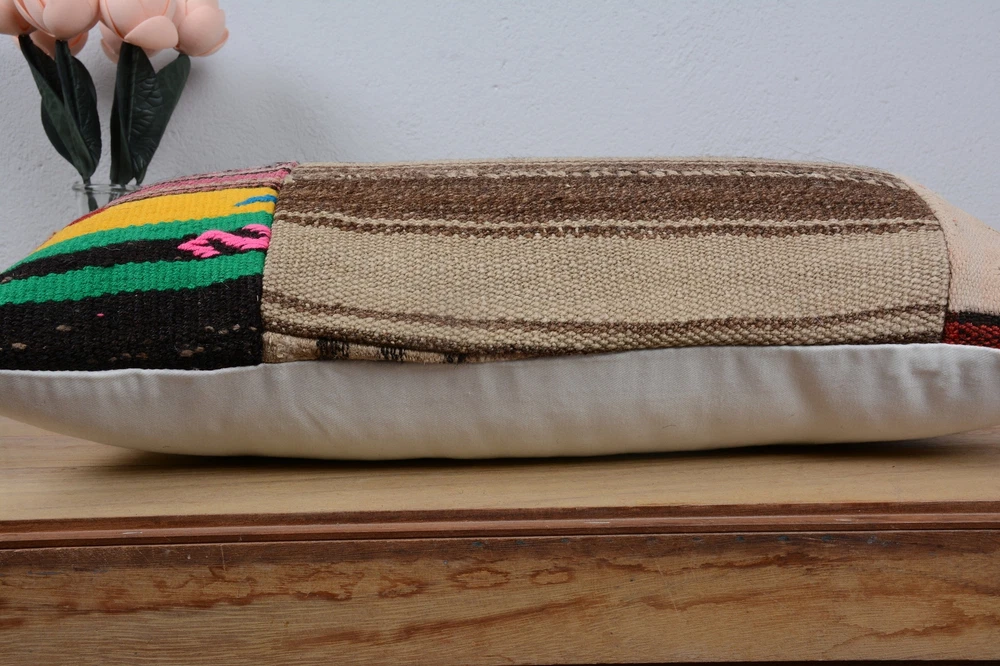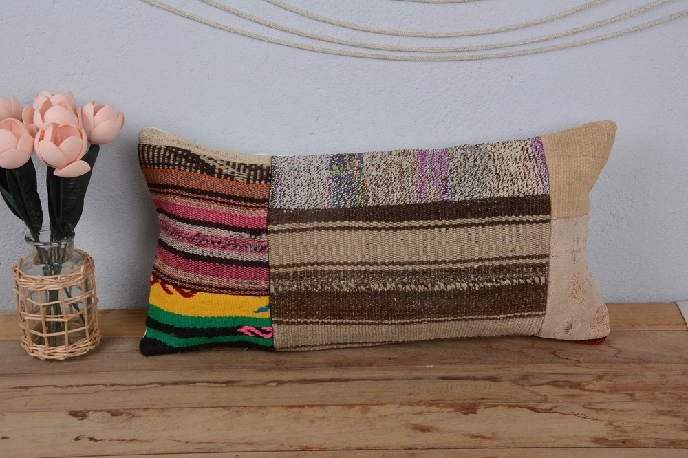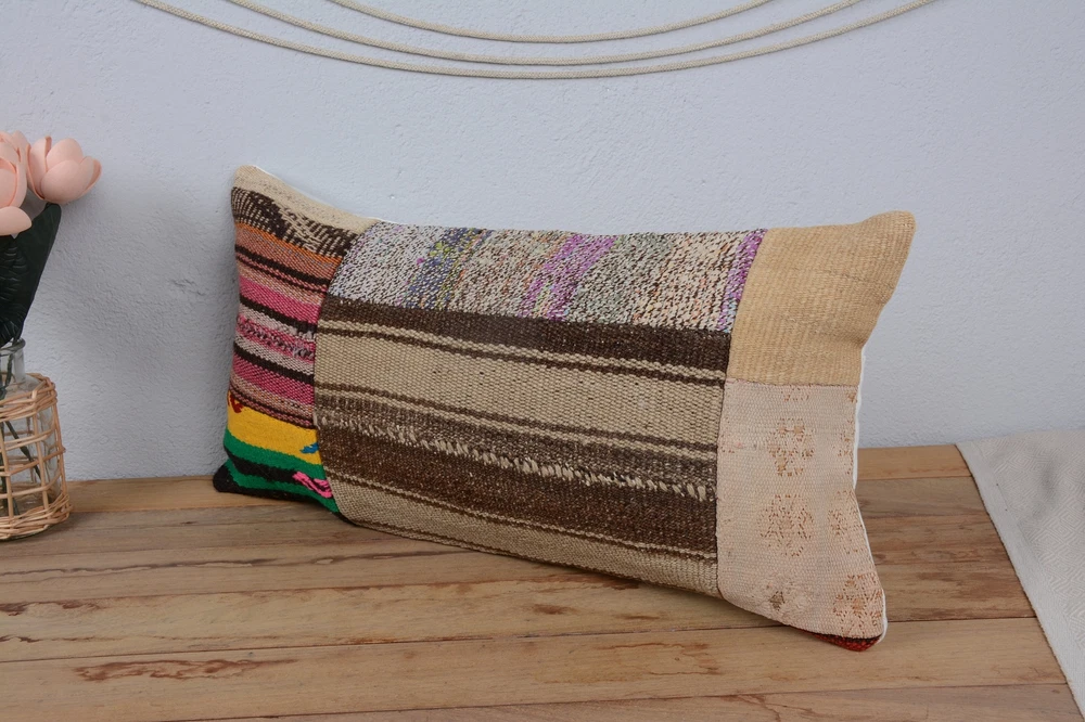 Turkish Kilim Pillow, Home Decor Pillow, 12"x24" Brown Cushion Case