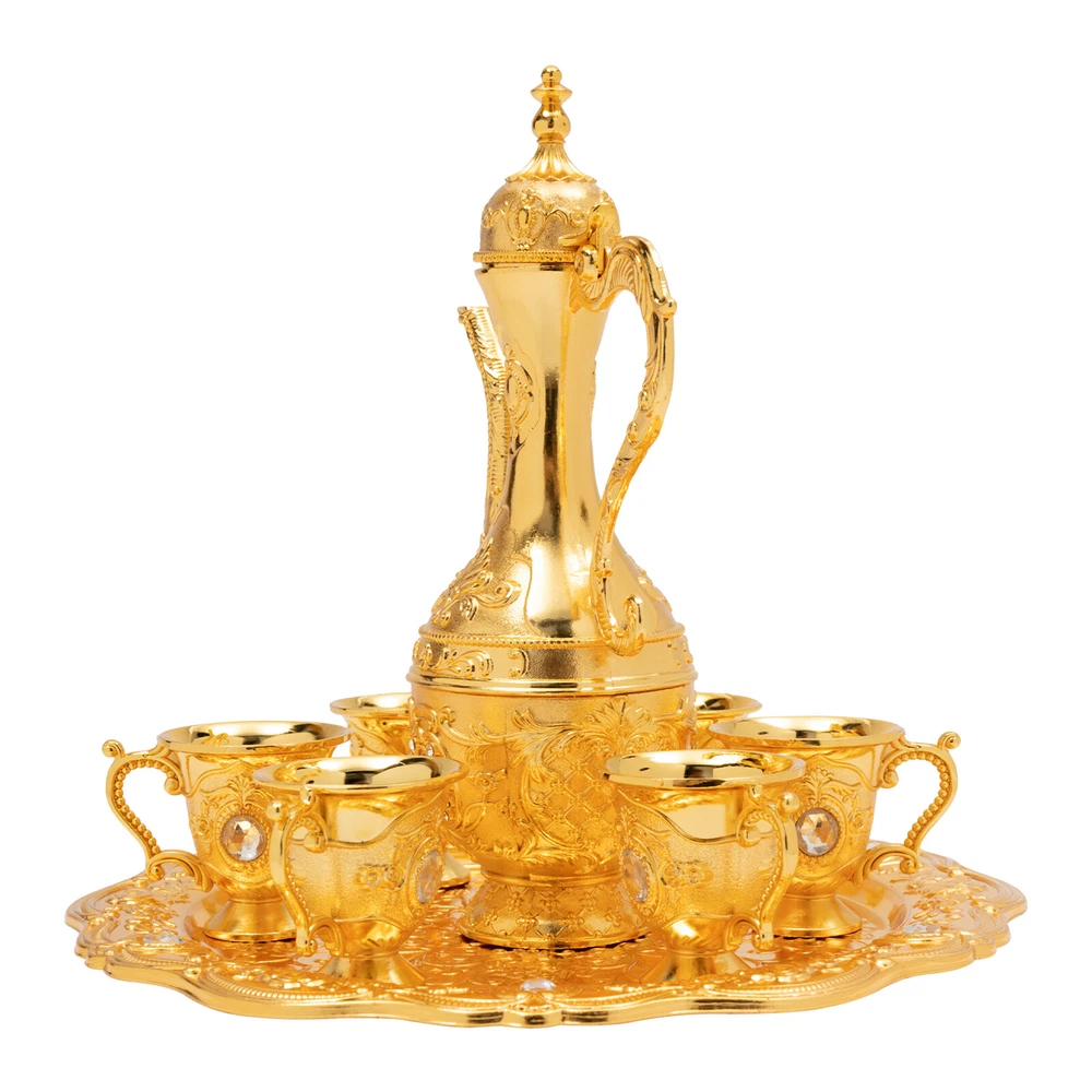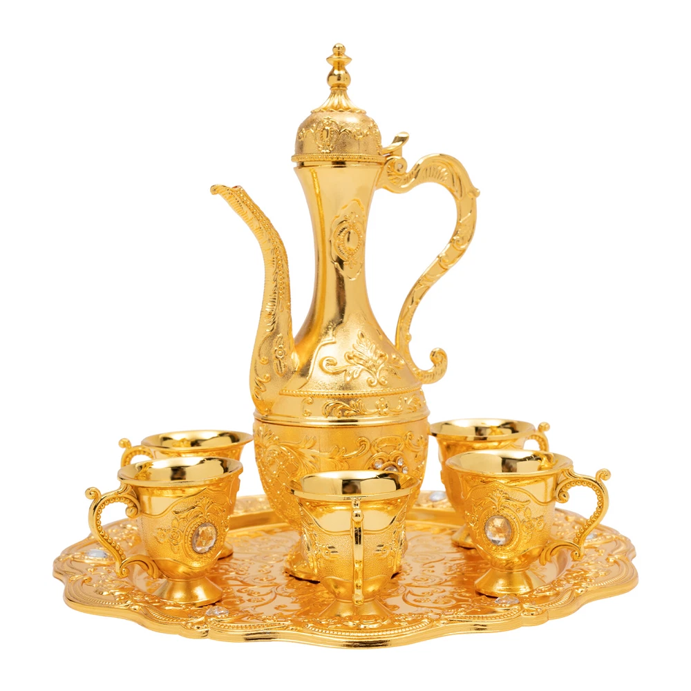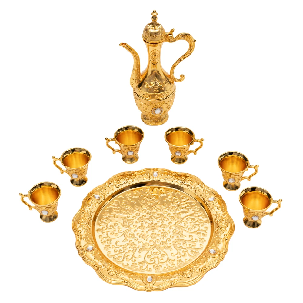 Specification Material: Zinc Alloy Process: Die-casting, Polishing, Plating Style: Antique, Turkish Number of Tea Cups: 6 Dishwasher Safe: No Teapot Capacity: 250ml/8.45Oz Each Tea Cup Capacity: 30ml/1.01Oz Assembly Required: No Tea Cup Size (D*H):5*6cm/1.97*2.36in Pot Size(L*H): 12.9*22cm/5.08*8.66in Tray Diameter: 24.5cm/9.65in Package Size: 26*26*9cm/10.24*10.24*3.54in Gross Weight: 0.9kg/1.98lbs Net Weight: 0.84kg/1.85lbs Package Included 1*Tray 1*Teapot 6*Teacups Description This Turkish tea set is unique, exquisitely designed, and crafted. It includes a teapot, 6 teacups, and a tea tray, and each component has been carefully selected and polished to ensure its quality and durability. The teapot has a classic and elegant shape with beautiful carvings, ad Turkish Tea Set Vintage Coffee Set W/ Pot +6 Cups for Wedding Tea Serving Set Specification Material: Zinc Alloy Process: Die-casting, Polishing, Plating Style: Antique, Turkish Number of Tea Cups: 6 Dishwasher Safe: No Teapot Capacity: 250ml/8.45Oz Each Tea Cup Capacity: 30ml/1.01Oz Assembly Required: No Tea Cup Size (D*H):5*6cm/1.97*2.36in Pot Size(L*H): 12.9*22cm/5.08*8.66in Tray Diameter: 24.5cm/9.65in Package Size: 26*26*9cm/10.24*10.24*3.54in Gross Weight: 0.9kg/1.98lbs Net Weight: 0.84kg/1.85lbs Package Included 1*Tray 1*Teapot 6*Teacups Description This Turkish tea set is unique, exquisitely designed, and crafted. It includes a teapot, 6 teacups, and a tea tray, and each component has been carefully selected and polished to ensure its quality and durability. The teapot has a classic and elegant shape with beautiful carvings, adding an artistic touch to tea making. Let's sip tea from these carefully crafted teacups to feel the beauty of time and space and experience a journey through history. Key Features Sturdy and Durable: The products are made of high-quality zinc alloy and through the process of die-casting, polishing, electroplating, and dripping glue, with corrosion resistance, high hardness, high smoothness performance, and long service life. Large Capacity: The large capacity teapot (8.45Oz) and teacup (each 1.01Oz) can meet your needs for drinking with your family or friends. Multi-functional: This product can not only be used as a tea set, you can use it as a wine awakener, wine decanter, wine dispenser, and so on according to your preferences. It also can hold liquids such as tea, coffee, and wine. Convenient to Use: The design of the press to open the pot makes it easier for you to hold it, and the rounded edge treatment on the surface of the product makes it not easy for you to cut your hand in the process of using it. Easy to Clean: The polished smooth surface and simple construction make the product easy to clean with water. Enhancement of Taste: The exquisite pattern is a wonderful blend of art and emotion, which is your high-end luxury interior decoration product. It is a great blend of three elements: European palatial atmosphere, exquisite carvings, and bright warm colors, bringing you an unusual visual enjoyment. With this exquisite tea set, you can experience the rich traditions of Turkish tea culture in the comfort of your own home. Direct Use: You can use the product directly after receiving it without assembling it, thus saving you time and effort. An Ideal Gift: This product has a beautiful appearance, it is an ideal gift for weddings, engagements, housewarming celebrations, and anniversaries, it can bring blessings to your family and friends, tea lovers, and history enthusiasts. Details Eagle Beak Spout: The spout is designed like a delicate eagle's beak with beautifully rounded curves and an ergonomic design for easy pouring. Anti-break Lid : The newly upgraded break-resistant design provides you with higher quality assurance and allows you to replace the cover as needed. Delicate Carving: This product adopts the combination of traditional Chinese carving and European carving art, with the relief symbolizing happiness and auspiciousness, bringing good luck to your family. Delicate Tray: The bottom of the tray is beautifully textured with a large embossed floral pattern. The entire tray has a soft curved edge, just like a blooming flower. It can not only place teapots and teacups to decorate the home environment but can also place fruits and other items separately, which is practical. Handle: Its shape is sinuous, just like a dragon flying in the sky. It is not only beautiful but also easy to grip. Application This product is suitable for tea steeping and enjoyment in homes, restaurants, hotels, offices, tea art galleries, and other occasions. Notes After receiving the product, you are required to thoroughly clean the inside of the teapot and teacup before use. For dust cleaning, please use a soft wool brush or a hair duster to sweep gently and then wash with clean water, and do not wipe with a rough towel. For oil cleaning, please use a fine silk cloth or cotton cloth dipped in gasoline or oil cleaning agent to gently wipe wet, clean water wash. Please be careful in daily life to minimize the knock or indirect man-made damage, prevent sharp objects such as nails, knives, or blunt objects from scratching and collision, and avoid using liquid cleaners with chemicals. Please do not put it into the dishwasher to wash, so as not to damage the product. Please allow the slight color difference caused by the shooting light and 1-3cm error due to manual measurement, and make sure you do not mind before ordering. Payment Delivery details Terms of sales About us Contact us Payment We accept ebay payment 。 Fees such as import duties, taxes are not included in the item price or shipping costs. These charges are the buyer's responsibility. Delivery details Shipping: 2-9 working days to: USA Terms of sales We maintain high standards of excellence and strive for hundred percent customer satisfaction. Feedback is very important to us. We hope that you contact us immediately before you give neutral or negative feed