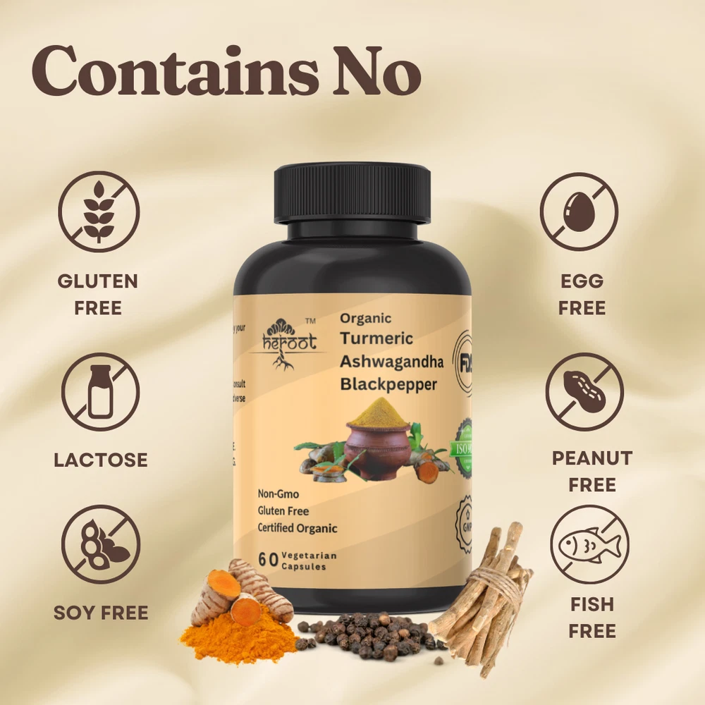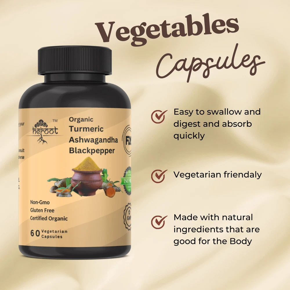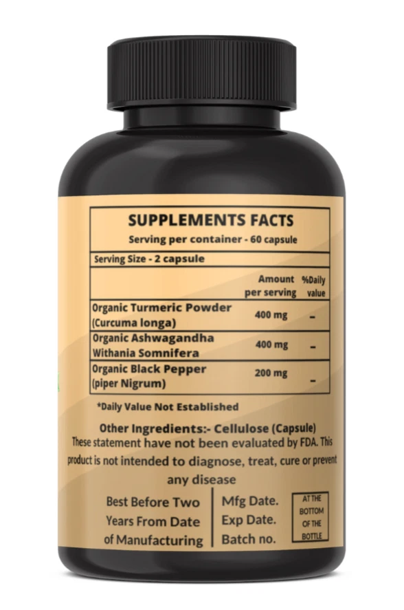 Heroot Ashwagandha with Turmeric Curcumin & Black Pepper 1000mg Veg. Capsules Ashwagandha is a natural treatment for low energy states and general exhaustion. It is also useful for those who have a tendency of contracting infections, cold and flu. It is a powerful anti-stress agent that helps in relieving mental, physical and emotional stress, restores and builds energy and helps prevent cold. Turmeric contains curcumin, a substance with strong anti-inflammatory, anti-bacterial, anti-microbial, and antioxidant properties. Because of these functions, it is known to support immunity, energy, brain and mood, stress etc. Our potent formulation is infused with black pepper for enhanced absorption and bioavailability. Key Ingredients: Organic Ashwagandha Root Organic Turmeric Curcumin Organic Black Pepper Key Benefits: Boosts immunity, energy, and overall daily productivity Enhances strength and stamina Provides joint and liver support, and improve cardio health May have antioxidant and anti-inflammatory properties Reduces stress and anxiety and also help to fight depression Promotes muscle recovery and athletic performance Directions For Use: As a dietary supplement, take one capsule per day with water or as recommended by your healthcare provider. Safety Information: Store in a cool dry place Keep out of reach of children If you are pregnant or lactating or prone to any food allergy or under any medical condition consult your healthcare practitioner before use Disclaimer The above description is for information and knowledge purpose, not a healthcare professional advice. Please consult your doctor and/or pharmacist before you take this vitamin. Pregnant or lactating women, diabetics, hypoglycemics, and people with known medical conditions and/or taking drugs, should consult with a licensed physician and/or pharmacist prior to starting any supplementation program. The above statements have not been evaluated by the Food & Drug Administration. Shipping and Handling Shipping time will be 1 business day after the cleared payment We will ship by Indian Post service Shipment will take 15-30 days. Few more days for your local customs delay and formalities. For Express service additional charges will be applied. For any reason you wish to leave Negative or neutral feedback, Please contact us first and let us mutually resolve it. We care for your satisfaction and will make sure that you are happy with the transaction to post us 5**** ratings in all areas. ***Customs Information*** Heroot will not be liable for packages refused or held by customs for delivery. We request that you contact customs office and ask about import regulations and restrictions before placing your order. It is importsnt for you to become familiar with customs policies for your specific country before ordering. Customs regulations differ by country and not knowing their regulations can result in your order incurring high import duties, the delivery being delayed or even returned. Please check with your customs office to see if your country permits the shipment of the products you are planning to order from us and if any additional licenses or permits are needed. Please note: if your order is returned to us due to banned/ restricted products policy, a wrong address, refusal to pay customs fees, refusal to accept the order or because no one was there to accept the delivery of your order, we will refund your order as follow: you will be refunded the total amount of the order, minus the original shipping charge