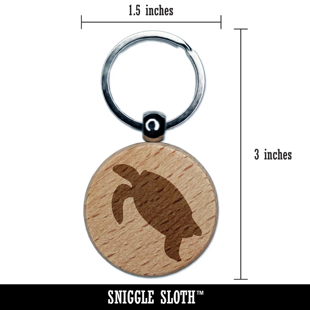 Turtle Swimming Solid Engraved Wood Round Keychain Tag Charm
