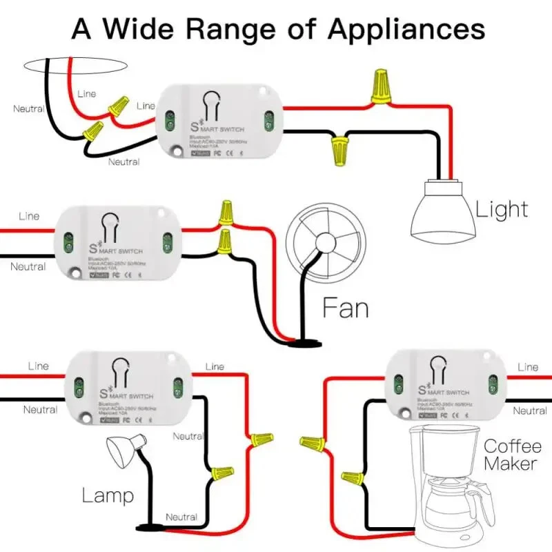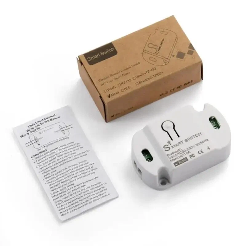 Tuya Smart APP WiFi Touch Wall Switch Light Wireless RF 433Mhz Relay Timer Module Home Alexa 110V 220V 10A On Off Description: Product Parameters Working voltage: AC90-250V 50/60Hz Maximum relay contact current: 10A Frequency: 2.4GHz Wireless Protocol: Bluetooth MESH Control method: device button / mobile App / 2.4G random panel switch / ECHO smart speaker Supports pairing of random stick panel switches (single-button version) Number: 16 Specifications: Description: Turn non-smart appliances or equipment into smart. 【Mobile App control】Control switch, timing, countdown and functions of the device through the mobile phone 【Voice control】Support voice assistants such as Alexa, Echo etc., to realize functions such as switches. 【Remote control】It can realize the remote control of the light by mobile phone, no matter where you are in the earth, as long as your mobile phone can connect to the network, you can control it. 【The Internet of Everything】Through settings, it can be linked with intelligent scenes to make life smarter. 【Reset function】In the distribution network state and the power is disconnected and powered on again, the relay does not work, that is, the power is turned off. Setting method: long press the device button for 5S, the device indicator light flashes. Package Included: 1×Smart switch or 1×Panel switch