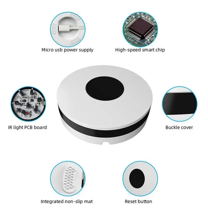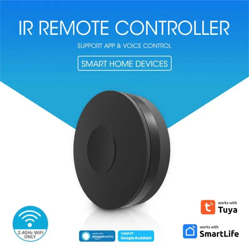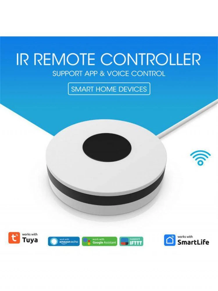Tuya Smart WiFi IR Remote Control Hub WiFi+433 For Alexa Air Conditioner TV wireless Infrared Universal Remote Controller Description: Power supply: USB 5V/1A Infrared frequency: 38-56Khz Infrared distance: 7M Maximum power: 0.55W Support: Amazon, Assistant, IFTTT Specifications: Intelligent voice control, can easily turn on infrared home appliances Smart learning function and DIY, when using the device, you only need to use your smart phone to control home appliances Built-in rich IR code library, supports most brands of infrared devices by default Hide the usb power supply behind, long-term power supply, bid farewell to power outages Package Included: Product *1 Manual *1 Charging cable*1