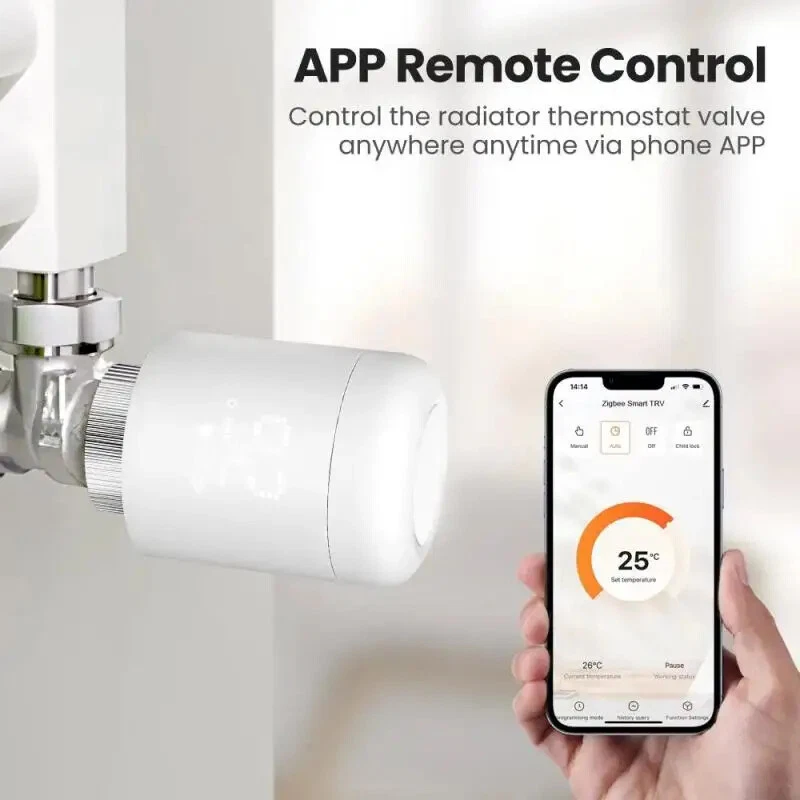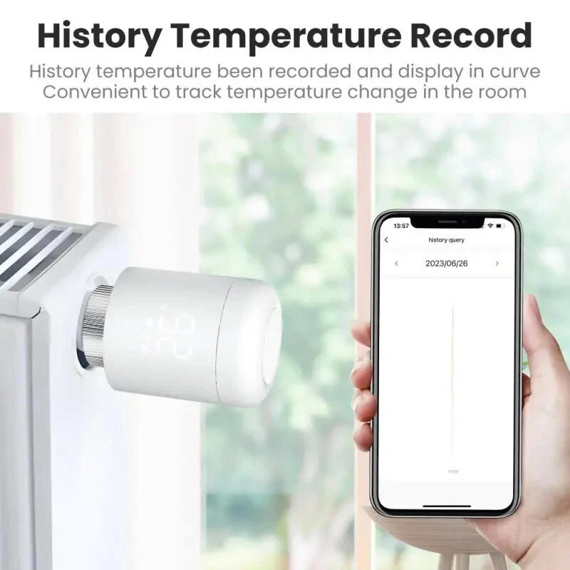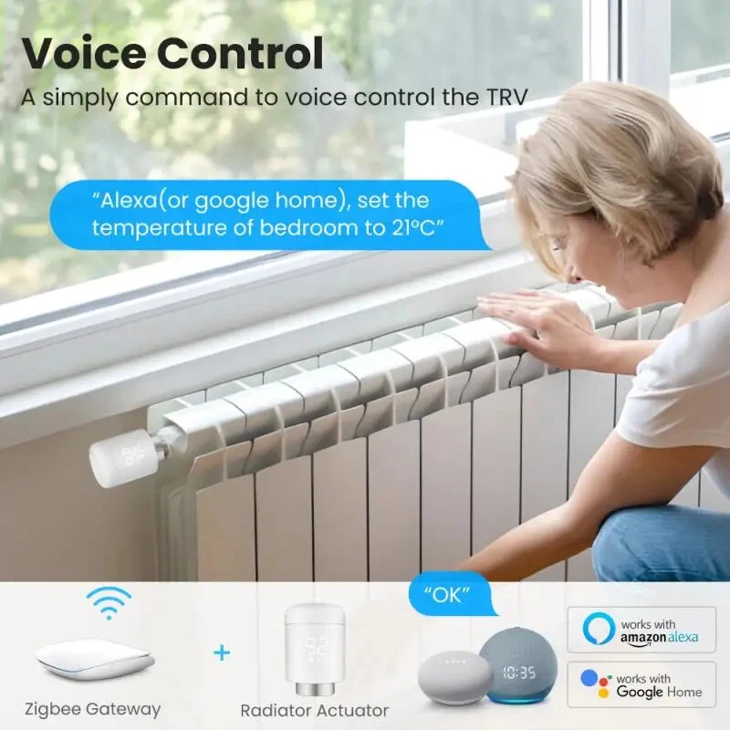 Tuya Smart Zigbee Thermostatic Radiator Valve Temperature Controller Smart Home Automation Via SmartLife Alexa Google Home Temperature sensor: NTC Working temperature: -10 ° C -40 ° C Voice control: Amazon Alexa, Google Home Environmental temperature: 0-50 ℃ Wireless protocol: Zigbee 3.0 Zigbee standard: IEEE802.15.4 Frequency: 2.4GHz Constant temperature tolerance: ± 1 ℃ Specifications: Ultra small body · sensitive control TRV ultra small design, not easy to occupy space, avoiding collisions with human or objects Voice control Simply control TRV with voice commands Weekly programming function Deeply customize the room temperature according to your specific needs, and set the time and temperature more accurately Historical Query The historical temperature curve can be queried, and you can know the changes in room temperature Frost/waterproof scale TRV will prevent water pipes from freezing and prevent scale coverage Temperature calibration function When there is a temperature difference, the calibration function can be used Linkage function Create different intelligent automation/click to run scenarios Group control function Implementing group control TRV for different rooms in special scenarios Package Included: 1 * Temperature control valve 1 * Instructions 1 * Accessories 1 * Screw