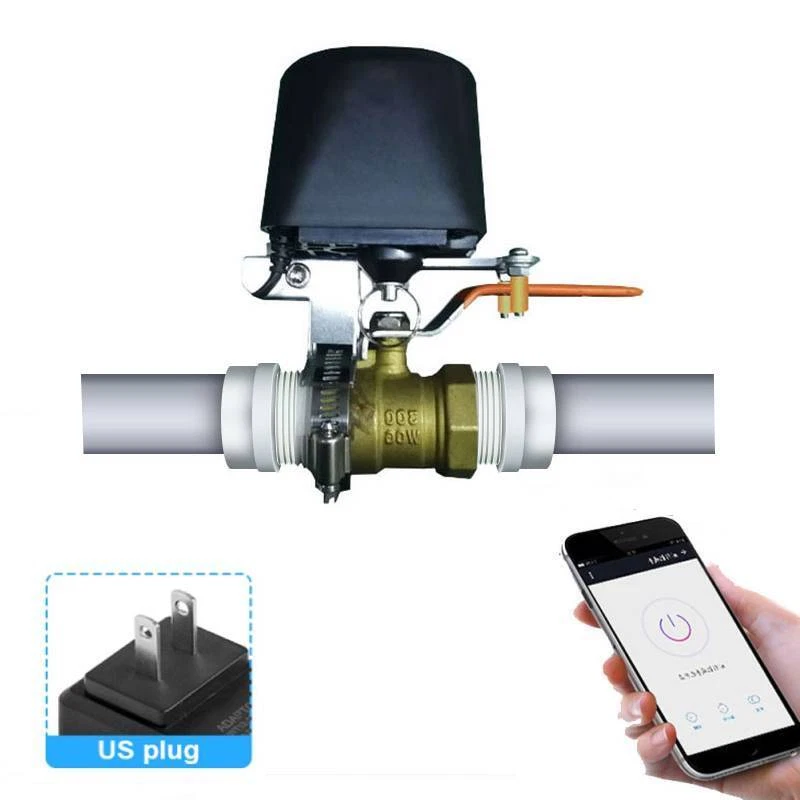 Tuya WiFi Water Valve Zigbee Gas Automatic Controller home Automation for Alexa Google Assistant Wireless Control Smart Life APP:Tuya Smart / Smart Life WiFi version to connect to the router Zigbee version connected to Tuya gateway Description: Rated voltage span : 12V-24V 1A-2A Torque : 30-60 kg . cm Communication technology : Wifi 2 . 4G Automatic switch valve : 5-8 seconds Wireless range ( sight of line ) : 60-80 M CE : 14-112638 Valve Pressure : 1.6 Mpa FCC : 2ACC6GR-105 App: iOS/Android " Smart Life " or " TuyaSmart" APP Remote Control Smart Valve Compatible with Alexa and Google Assistant, IFTTT Specifications: 【The Valve power by TUYA】 You can shut or open the valve automatically with smart phone no matter where you.. Ever if you are away from home,the mobile phone can be remotely controlled,open the watering valve to water the farmland,water the garden,and close the gas valve. 【Mobile phone application remote control】 The WiFi smart valve compatible with Amazon Alexa and Google Home Assistant, allows you shut-off/on your water valve via your voice 【Applicable Products】 Compatible with water pipe ball valves, electric, manual control switches, and natural/liquid/tap gas, suitable for controlling water valves, natural gas valves, filling pools, farm watering plants 【Suitable for automatic control of water pipe ball 】valves,electric,manual control on and off,for Gas valve opening and closing,also suitable for self-controlling switches of valves such as liquids and other gasesses 【Set the time to automatically open or close the valve】 In order to prevent power outages caused by the inability to use,there is a manual clutch at the bottom of the unit with a pull ring, which allows to move the lever to close or open the valve 【Easy to install】Applicable to new and old gas water pipeline valves, no additional piping, users can install it themselves Package Included: 1*Host 1*User Manual 1*Adapter