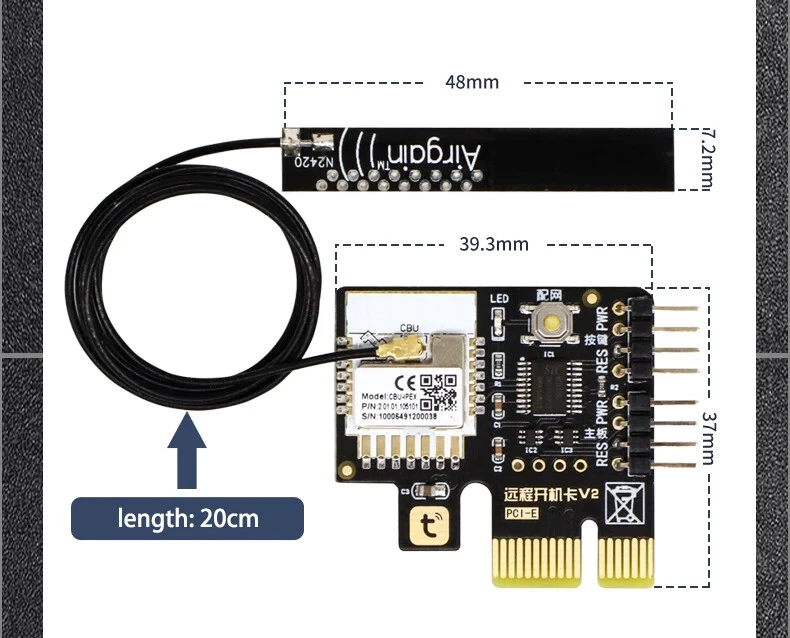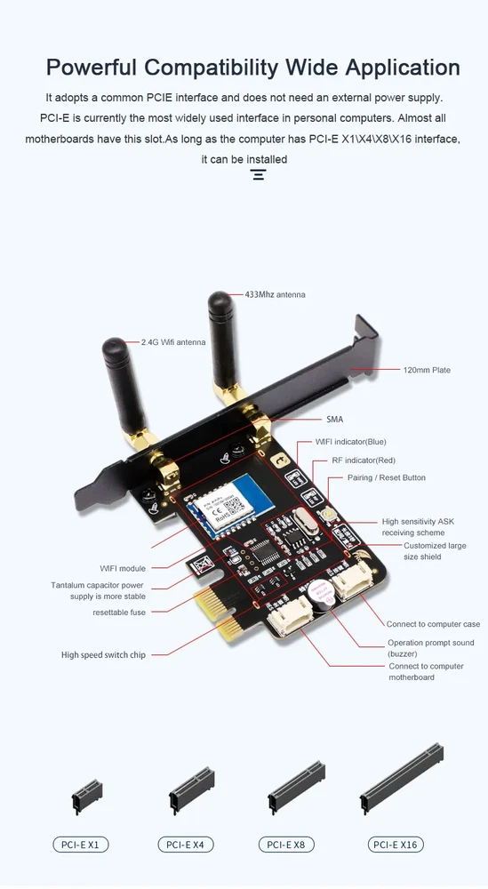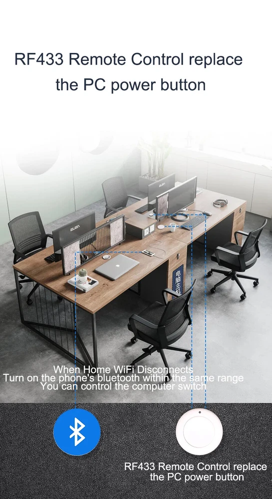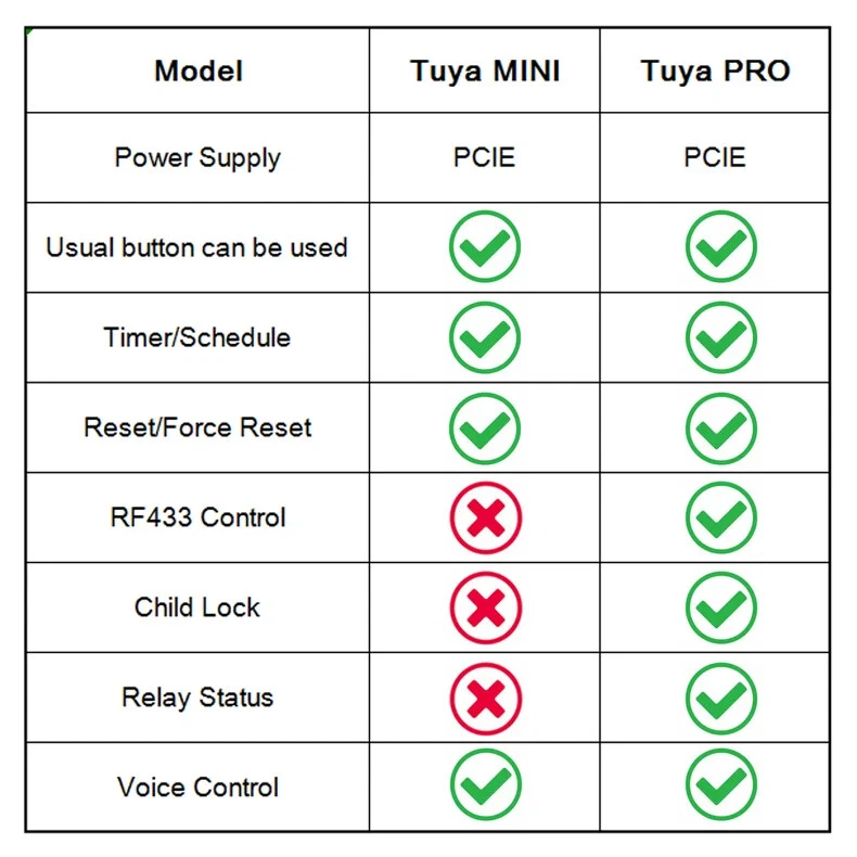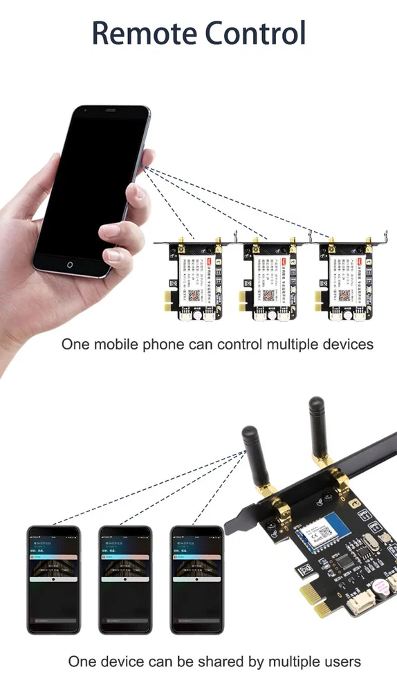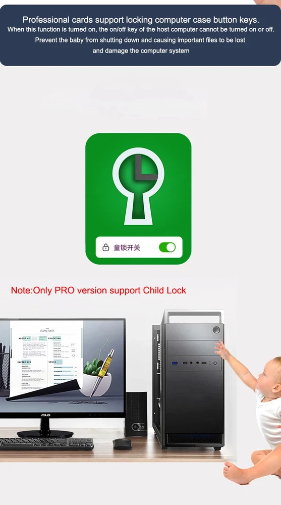 Note: it doesn't work with branded desktop computer,Like Apple,DELL and HP et. Wifi Switch for Desktop Computer 1. Easy Installation Standard PCIe port, work with most destop computer. Install to use, don't need any driver software. 2. App Remote Control Control your computer on Tuya App anytime any where. Always know the computer status on App. 3. Wifi+Bluetooth "Tuya MINI" and "Tuya PRO" Card support wifi and bluetooth connection. When wifi is disconnected, you can still control your PC on Tuya App through bluetooth connection, don't need any setup. 4. Voice Control Work with Alexa Echo, Google Home Assistant, Yandex Alice, easy to control your PC with simple voice command. 5. Timer and Schedule Set a timer to power on/off, or make a weekly schedule to power on/off the computer, automate your PC. 6. Reset And Force Reset Not only "Power on/off" function, it also support "Reset and Force Rest" function, avoid harm to your computer system. 7. Child Lock (only "Tuya PRO" support) Make the PC Button out of function, never worry about sudden shutdown caused by kids or mistaken touch, avoide important date loss. 8. 433RF Remote Control (only "Tuya PRO" support) Hard to reach the computer power button? The "Tuya PRO" card come with a 433 Remote Control, just put it on the table or anywhere you want. 9. Relay Status (only "Tuya PRO" support) You can set the computer to power on or keep power off status, when power up again after power failure. How to install? Step 1,find Power SW cable and Reset SW cable on mainboard,then pull out them. Step 2,fix APP remote computer module in free PCIE. Step 3,Insert the previously pulled out Power Sw and Reset Sw wires into the corresponding positions of the boot card, and insert the Power Sw and Reset Sw wires of the boot card into the corresponding positions of the motherboard. Remote Control You can download the"TeamViewer" software to transfer data at anytime and anywhere. ATTENTION: If the computer turn on automatically after it's turned off. Here are the solutions: 1. On computer, go to WINDOWS settings and "Power Options", change the option "When Press on Power button“ to "Shut Down". 2. On computer, go to WINDOWS settings and "Power Options", enable the option "turn on fast startup". 3. On computer, go to BIOS settings / Anvanced / APM Configuration, change the option "ErP Ready" to "Disabled" status. 4. If your computer use "Wake on Lan", please close it. If the computer turn on automatically after it's turned off It is because the PCIE card slot has no power and cannot supply power to our equipment. You only need to enter your computer’s “BIOS” setting and set the computer motherboard to remain powered when the computer is shut down to solve the problem. For example: (1). On computer, go to BIOS settings/Anvanced/APM Configuration, change the option "ErP Ready" to "Disabled" status and change the option “Power on by PCI-E” to “enabled”. Note: This is only the setting method for one of the mainboards. Due to too many types of computer mainboards, it is impossible to list them all. Regardless of the type of motherboard, the solution is to keep the motherboard powered after the computer is turned off. How to connect the 433 Remote Control with "Tuya PRO Card"? 1. In Tuya App, open the "RF study" function in device setting of the card. 2. Short Press on the Remote Control, connection succeeded. How to disconnect the 433 Remote Control with "Tuya PRO Card"? Long press the "Reset Button" on computer case, you will hear "di", "di", "di-di", "di-di-di", "di-di-di-di", release the button When hear "di-di-di-di", then all 433 Remote Control connection is deleted. Q&A 1. The manual power button on PC case can work or not after installing this card? Yes, the power button on PC case and App can be used at the same time. 2. Can I use the App to control PC when I'm out for vacation or bussiness? Yes, the app will work on 2/3/4G mobile network. You can control PC by app anywhere. 3. Can I control PC on App through bluetooth connection when wifi router is offline? Yes, when wifi is offline, just need to open the phone bluetooth, then you will be able to control the PC on App. 4. Can it support "Voice Control"? Yes, it support voice control through Alexa, Google Home and Alice. 5. Does it need a gateway or hub? No, it can be connected with wifi router directly. Don't need any gateway or hub. 6. Can it work with laptop? Do you have similar product for laptop? No, only for desktop computer. We don't have similar product for laptop for the moment. 7. What's the battery type of 433 Remote Control? Does battery include in package? Battery type: CR2032, 1pcs. the batteries are not included in the package due to shipping limits.