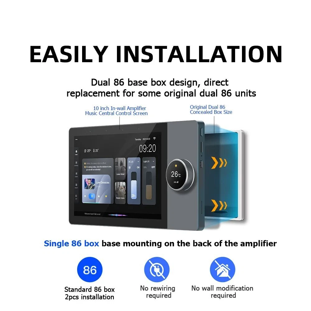Tuya ZigBee Smart Home Central Control Touch Panel Gateway APP Control 10"/8"/6" Aabout F6- Multifunction combination center control screen EASY SMART HOME CONTROL FOR EVERYONE: Brilliant touchscreen panels with built-in Tuya Smart APP make it easy for everyone at home to control popular smart devices, lighting, locks, thermostats, scenes and more by simply. EASY TO REPLACE: You only need to connect the wires hidden in the wall to the dimmer. If you need, you can quickly connect your home theater speakers and fix them on the wall. The whole process only takes 15 minutes. MAKE YOUR HOME SMARTER: You can set up different scenes and let different smart home appliances match your life. You no longer need to look for remote controls for air conditioners everywhere, and you don’t need to use many switches. You only need to tap when you enter the door, and a romantic dinner will be accompanied. With just the right warm light, soothing music will appear immediately. TUYA LIGHTS & SMART LOCK CONTROL: Now everyone at home can easily browse and play music with different brand speakers, control anywhere smart lights in your home, and unlock the door with a compatible smart lock—all without needing a phone. INSTALL THE APP YOU WANT: This machine comes with a 8GB TF card, you can download your favorite music player or other APP to the card, and you can apply all the programs after inserting the card. F8 Smart Control panel specifications Characteristic: 86 base case, can be used in combination, center control, background music. Voice: Spics 4MIC Far field wake-up, up to 10-12m 4MIC Hello! xiaozhi, Support for modifying wake-up words (custom) Content: Support voice on demand Mi Gu music, children's education, crosstalk, skits, opera, historical stories, fairy tales and fables, children's enlightenment, Xiehouyu, brain teasers, poems, idioms, translation, stock query, chicken soup for the soul, food nutrition, recipe query, mathematical operations, alarm clock. Education content: Children 1-3 years old enlightenment education content, children, stories, Sinology, general knowledge preschool, master tutor content one age - junior high school, support remote control selection to watch APP on demand: Support exclusive APP binding, on-demand play music, children's education content, control devices (Xiao listen to music) Smart home : Tuya IOT Music scene : Select different music based on different scenarios Wallpaper switch : Custom wallpaper switch, style switch Play Music on Time : Supports multiple segments of timed music playback, select the appropriate volume, Spotify music. F8 Multi Functional intelligent Central Control Screen other function 1. Mobile APP control, voice intercom, broadcast, APP push content 2. Support voice wake-up, play music, stories, children's songs, check the weather, check the flight, smart home control. 3. Bluetooth playback, the host can control the Bluetooth playback device to switch music 4. Play music at regular intervals, start songs at regular intervals, and play specified music at regular intervals 5. Support external devices to control the device through 485 6. Local, TF card, U disk, Bluetooth, play music 7. 485: supports bidirectional 485 control 10 inch Wall Amplifier In-wall Amplifier SPECIFICATIONS: ● RMS Power : 2x25W ● Output Impedance : Ohm ● System : android 8.1 ● Display : 10 IPS display ● Resolution : 1280x1200 ● Memory : 2G+8G Features: ● Support Wi-Fi, Tuya IOT, ZIGBEE, RS485 ● With Relay for Switch/Light/curtains etc ● 1.5GHZ CPU ● 4-core processor ● TI amplifier, Bluetooth, USB/TF, RJ45, ● Audio in, Audio out ● Built-in speaker ● Timer function ● Smart home control with RS485 port ● Remote control ● Input power : AC110-250V ● Suitable for background music & smart home device control PACKAGE INCLUDED: 1 x Wall amplifier 1 x User Maunal 2 x Wire box Kindly Note: ●One way Bluetooth, CAN NOT be connected to the phone by Bluetooth, can only connect the Bluetooth speaker by Bluetooth ●CAN NOT connect the phone's Bluetooth to control the music directly, if you want to control the music by your mobile phone, you can use TUYA application to control. ● APP "Play Store" and "Google Chome" some countries can use perfectly, but some countries can not use, this is not our product quality, it is because google service of our device is not allow in those countries, it is not a reason for refund. Please contact us before order Note ● In some countries, some apps can be used perfectly, but in any countries can not be used, it's not our product quality, it's because google service of our device is not allowed in those countries. ● Our company continuously improves product performance, and design specifications are subject to change without notice Payment Delivery details Terms of sales About us Contact us Payment We accept PayPal,ebay payment. Please make sure your address is correct before you pay. Feedback will be left automatically after we receive your feedback. Please contact us before leaving a Negative feedback or Neutral feedback. We would try our best to help you solving any problem. Delivery details We Ship Worldwide. Item will be shipped out within 1-3 business day after full payment received. Delivery Time: USA ------------------------------- 7-15 Working Days by China Epacket delivery. Australia ------------------------ 7-12 Working Days by AUpost-eparcel from China. UK/ Canada -------------------- 10-20 Working Days Europe -------------------------- 10-25 Working Days Italy/ South America ------ 12-25 Working Days Terms of sales We offers 30-day refund, and 1 year manufactured warranty on all products, Warranty period starts from the date of purchase. After 30 days from the date of purchase, all return can only be replaced by same item, unless this item is out of stock at that moment,buyer need pay the shipping fee. * Warranty will be voided if the product is mishandled or physical damaged by customer. We will
