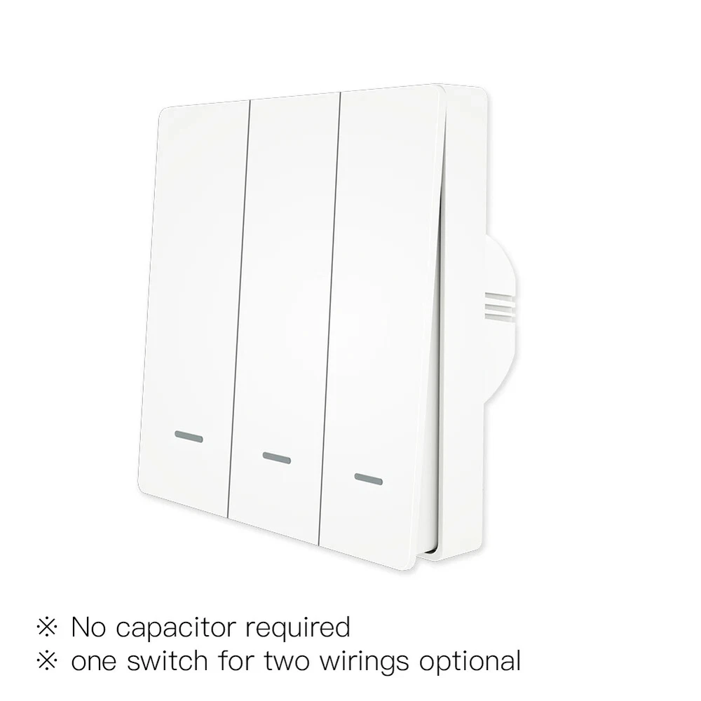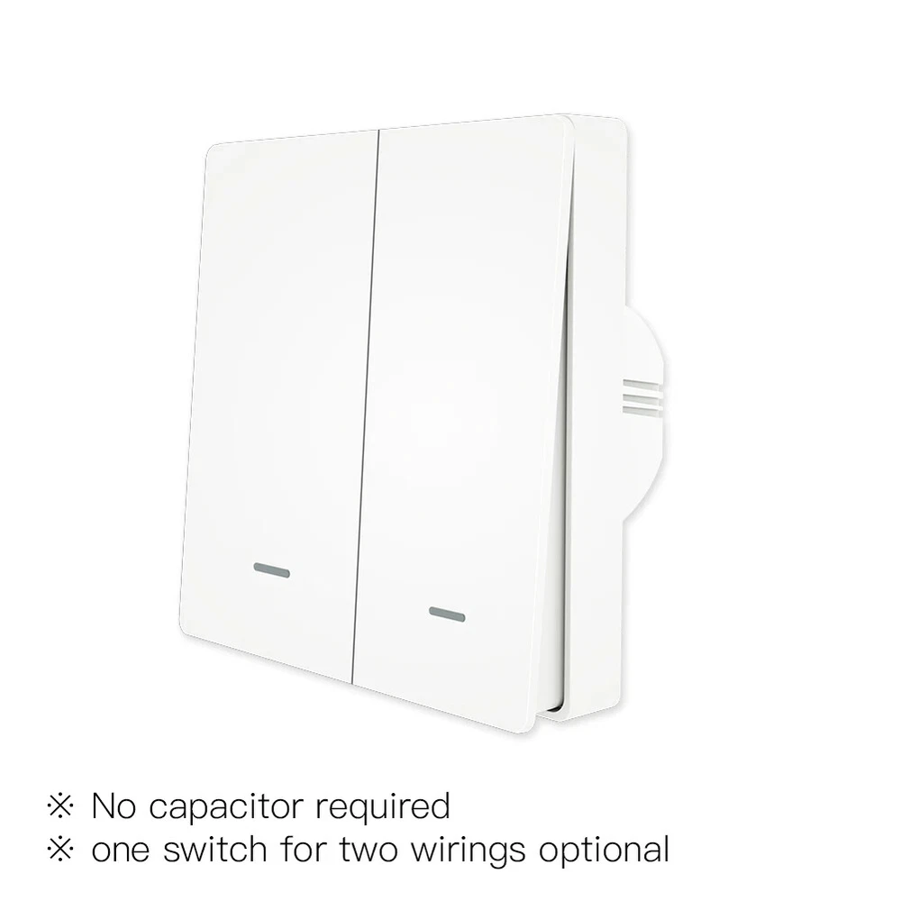 ZigBee Wall Touch Smart Light Switch with Neutral Wire/No Neutral Wire,No Capacitor Needed Smart Life/Tuya 2/3 Way Muilti-Control Association Remote Control Works with Alexa,Google Home Hub Required By Moes Main Features: 1.New design with neutral wire required and single live wire featured in one switch panel;No neutral wiring required for the single live wire version;Wire the neutral wire on the switch when needed;No capacitor needed for the new update version for better user experience without noise from electric current;Tuya Zigbee hub is required for the normal use of this switch,featured as much compatibility with tuya smart devices than any other hubs. 2.New idea for 2/3 Way circuit (two switches control one light)that is explained as multi-control association of this switch to other smart switches in App; ON/OFF relay status as remember last status when power off and backlight switch setting in Smart Life App for better sleep at night; capacitive touch control, turn on/off your light with a single touch and scratch resistance glass panelgives the best look to blend with any wall design. (Note:You can multi-control associate of this switch to multiple different switches,but several gangs on one switch is not available,only one gang on one switch can be associated for multi-control.) 3.Differ in features from traditional common switch,this smart switch is able to be controlled by various ways alone with the best value like App control,touch control and voice control;achieve multi-control by associating to other smart switches to get 2/3-way circuit for your house lights. 4.Compatible with Alexa,Google home and Yandex allows free voice control;remotely control devices and intelligent settings allowed on your smart phone via Smart Life/Tuya App wherever you are; Take full control of connected appliances with timers, schedules and countdown (1/5/30 mins, 1 hour, etc.) with the app; share control with family and friends for added convenience 5.No more worries about purchasing the wrong version for your house wiring limited;only supports 2.4G network; includes full 2-year warranty and 60-day refund guarantee for complete satisfaction One ZigBee Smart Switch With TWo Wirings Optional 2020 New Arrival Upgraded with More Personalized Points: Provide much more convenience and updates for your smart lifestyle with the price unchanged as before. Update 1: No Capacitor Required Ours:No more worry about being affected by the noise from the capacitor when sleep, with no capacitor required as complex installations anymore for normal use No capacitor required / one switch for two wirings optional Note: If there is no neutral wire in your house, just ignore the N position for wiring, and if there is one, just wire it for normal use Update2: One Switch For Two Wirings Optional Update 3: A New ldea For 2 Way Control Multi-control association of the switch to another ZigBee smart switch in the App for achieving 2 Way feature( two switches control one light) Note: There is no need to wire the new added switch to the light, only L and N are required for wiring. (for neutral wire version) Update4: New ON/ OFF Relay Status in App More personalized settings as ON/ OFF/ Remember last status when power off Update5: Backlight Switch with ON/ OFF Optional No influences on sleep. Smart Zig Bee Switch Intelligently control the device after connecting it to most ZigBee hub, Tuya ZigBee hub required for its much more compatibility with zigbee devices than other hubs Smart Life Tuya Remote Control Remotely control your switch wherever you are Hands-free Voice Control Free hands via easy voice control with Alexa and Google Home Note: Hub is not included in the package Timer Function Timing setting and countdown options Family Sharing Add device to your Smart Life App to get multiple control ways for controlling with your family together. You can create group in the APP to manage all the lights in your house and share the device to your family members Multiple people control one / One person controls more than one How to achieve 2 way/multi-control Step 1 1.Wire switch 1 to N+L+L1 2. Wire switch 2 to N+ L, no light needed Step 2 1. Complete the confguration of switch 1 to APP 2. Achieve way by associating switch 1 to switch 2 Note :For neutral Wire required version only Step 3 Now you can manual and app control one same light with switch 1 and sWitch 2 at the same time Step 4 Multi-control associate to more switches by repeating steps above to acheive 3 or more sWitches to control one Same light Note: No capacitor required for easy installations. Note: No capacitor required for easy installations Note: If there is no neutral wire in your house, just ignore the N position for wiring, and if there is one, just wire it for normal use. Parameter: Working voltage:AC100-250V,50/60Hz Current type:Total 10A Inductive load(LED/CFL):3-120W Resistive load(Incandescent):3-300W for 110V;3-600W for 220V Power consumption:≤0.5W Working temperature:0℃~40℃