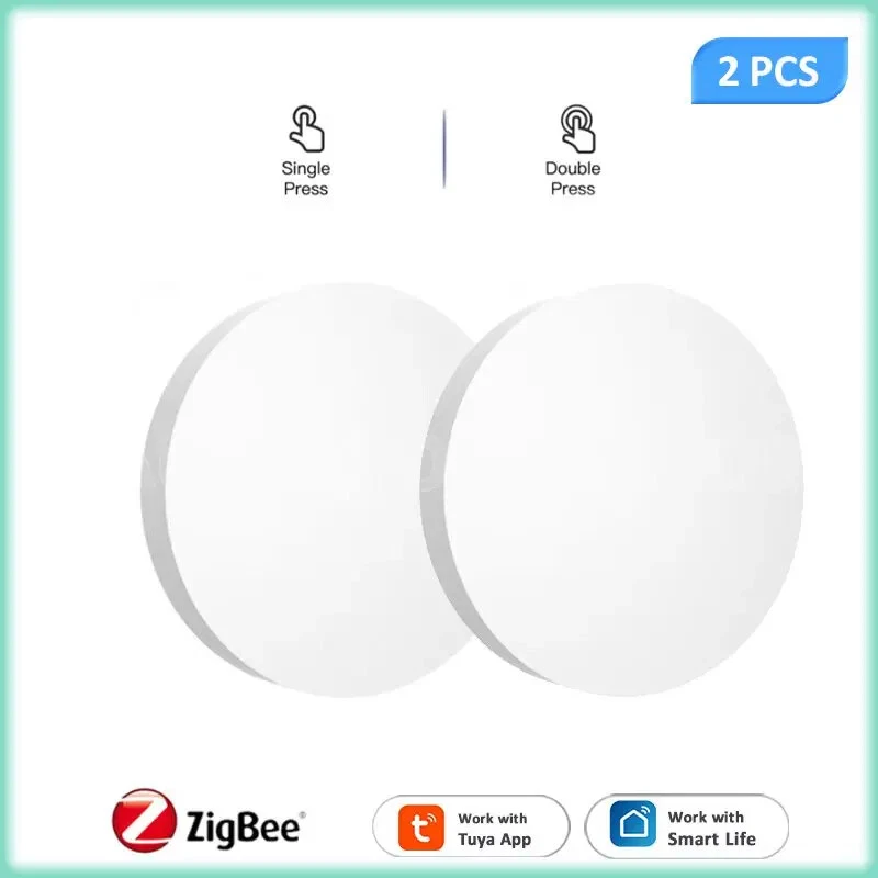 Tuya ZigBee Smart Push Button Scene Switch Wireless Remote Control on Off Key Controller Multi-scene Linkage Smart Switches Notes: Need to be used with zigbee gateway. Control tuya smart's devices. Description: 1. 【Custom/Key Operation Scene mode】 Smart scene button, matching the smart scene, one key to open the smart scene. You can freely set scenes or lights on TUYA Smart. In the scene mode, the button respectively support single click, double click scene requirements. You don't need to click the scene mode on your phone, just click the ZigBee smart remote control to open the smart scene. For example, movie mode: turn on the TV, turn off the lights in the living room, draw the curtains, turn on the TV ambient light, and turn on the audio. Simply click the remote control button to do it easily. 2. 【Can control any smart device (provided by TUYA)】 Control lights, electronics and small appliances from anywhere. 3. 【Ultra-low energy consumption, battery-powered】 the battery life can be up to 1 years, without frequent battery replacement. No wiring required. 4. 【No need to install】 Can be hung on the wall, can also be placed on the table, and you can get it at your fingertips! Specifications: Power supply: Battery CR2032 3V DC (the battery is not included in the package) Communication: Zigbee 3.0 Control distance: 25m open area Dimensions: 50mmx50mm Operating temperature:-10°C-45°C Working Humidity: <90% RH Life of battery: 1 years (General use) Package Included: 1*scene botton 1*manual