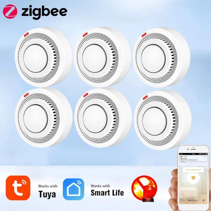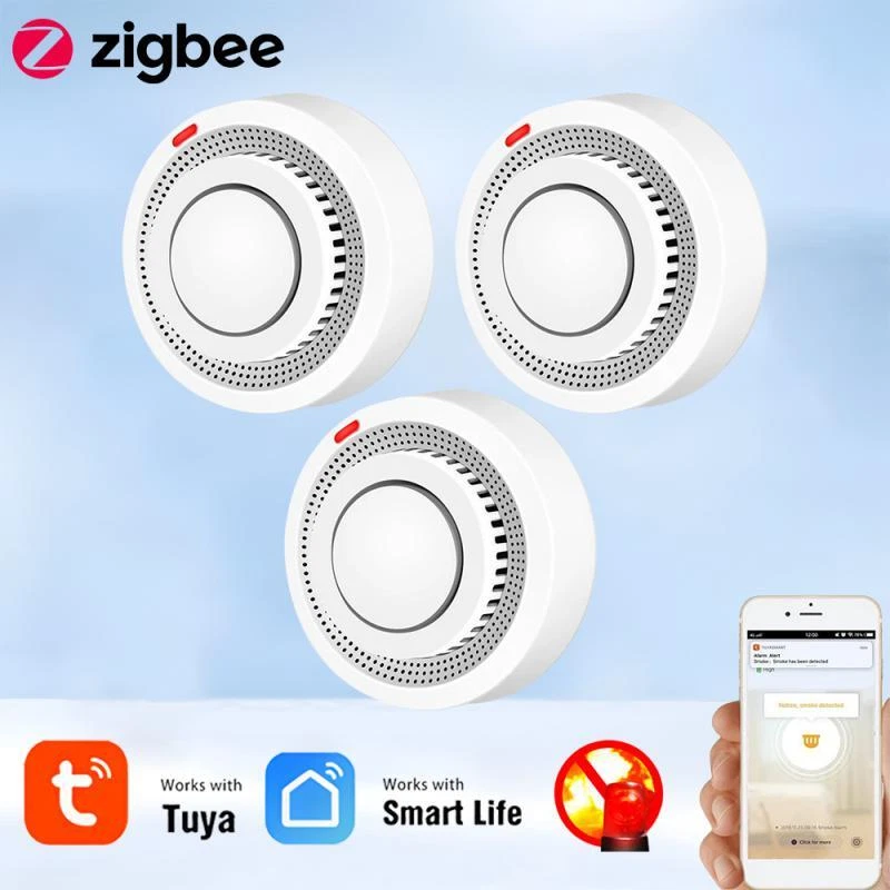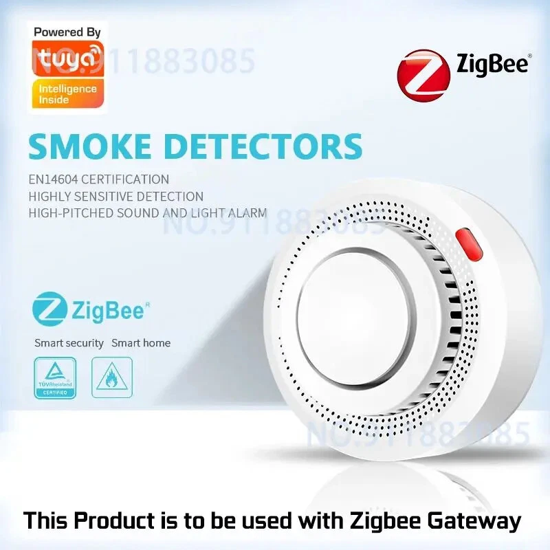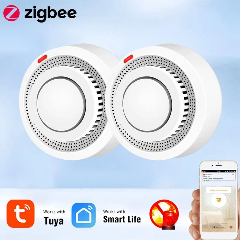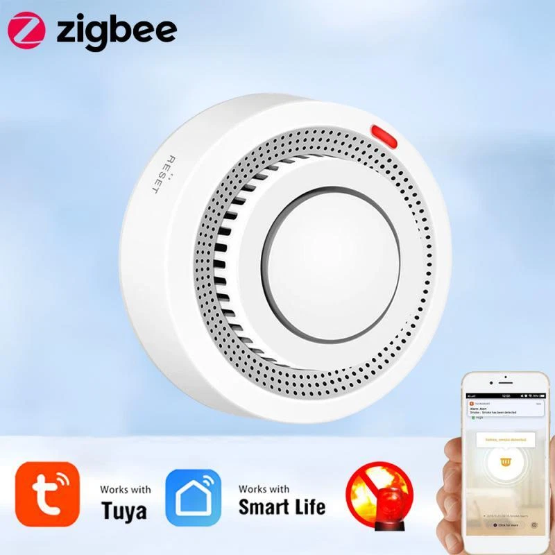 Tuya Zigbee Smart Smoke Detector Smart Life APP Remote Control Fire Alarm Home Security Smoke Sensor Work With Zigbee Gateway Description: 1.Tuya Smart ZigBee Smoke Detector:A Tuya ZigBee Wireless Gateway Hub is a must to work with the smoke detector sensor,as well as a variety of ZigBee smart products. 2.Professional design, fast perception of fire supported that ensures high sensitivity of smoke and temperature, effectively reduce false positive rate and make the police more accurate. 3.App Push Notifications and Control:Compatible with Smart Life and Tuya App enables the timely discovery of danger of fire or smoke and real- time notifications to your smart phone. 4.Low power design and long battery life for this ZigBee new version with low voltage monitoring prompt function available. 5.Real-time Voice Alarm Prompt with Wide Range:This smart smoke detector owns the wide monitoring range of3m ahead,and it will intelligently and quickly issue more than 85dB alarm sound and push notification to you App automatically. Specifications: Product name: Zigbee Smoke Alarm Input voltage: DC3V LR03 Quiescent current: ≤ 35uA Alarm current: ≤100mA Battery: 2*1.5V AA battery (Not include) Low voltage and undervoltage: ≤2.4V Alarm sound pressure: 80db/1m Wireless Technology: ZigBee Transmission Frequency: 2 .4GHz Detection range: 20 square meter Installation method: ceiling installation Working temperature: -10°C~ 50°C Working humidity: up to 95%RH Material: Plastic Size: 80x38mm/3.15x1.50in Color: White Package Included: 1*Zigbee smoke detector 1*User's Manual Notes: Notes: This product needs to be used with ZigBee3.0 gateway.