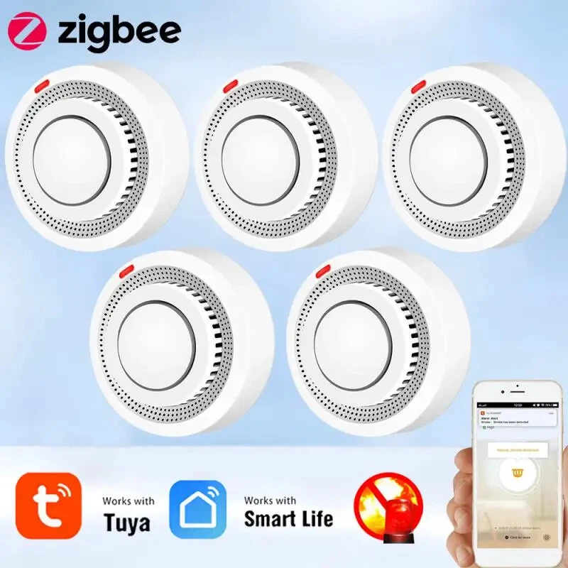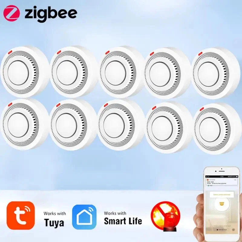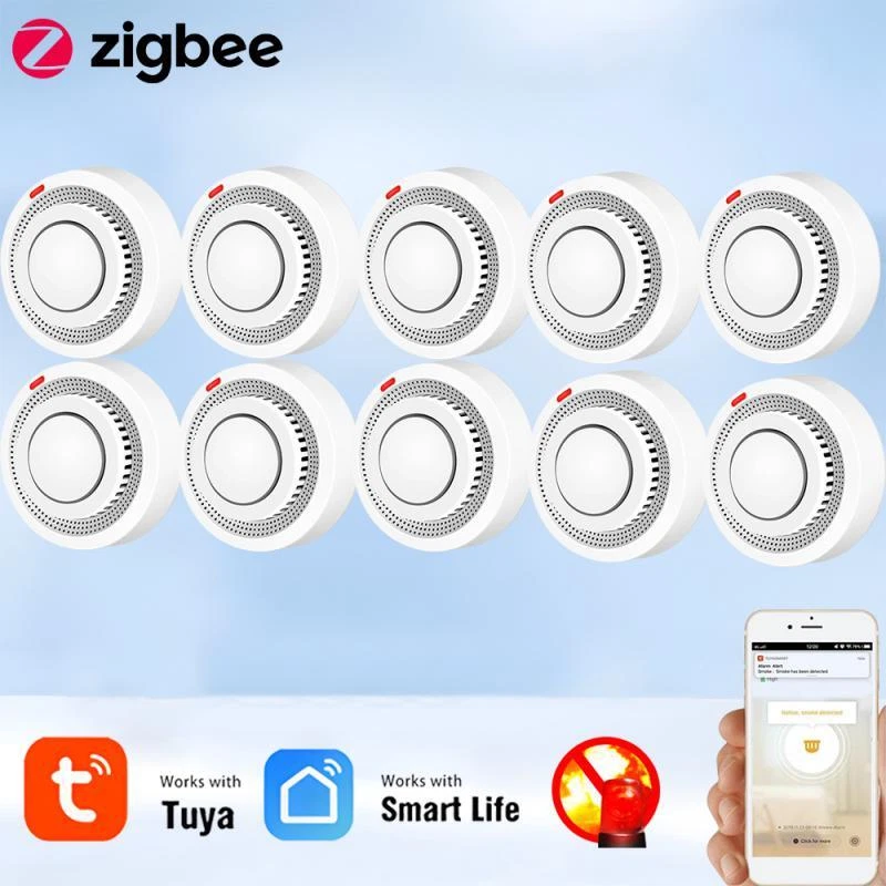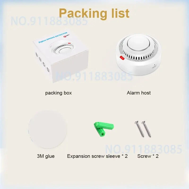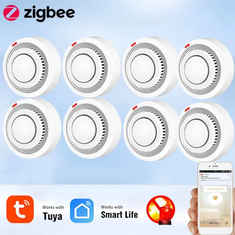 Tuya Zigbee Smart Smoke Detector Smart Life APP Remote Control Fire Alarm Home Security Smoke Sensor Work With Zigbee Gateway Description: 1.Tuya Smart ZigBee Smoke Detector:A Tuya ZigBee Wireless Gateway Hub is a must to work with the smoke detector sensor,as well as a variety of ZigBee smart products. 2.Professional design, fast perception of fire supported that ensures high sensitivity of smoke and temperature, effectively reduce false positive rate and make the police more accurate. 3.App Push Notifications and Control:Compatible with Smart Life and Tuya App enables the timely discovery of danger of fire or smoke and real- time notifications to your smart phone. 4.Low power design and long battery life for this ZigBee new version with low voltage monitoring prompt function available. 5.Real-time Voice Alarm Prompt with Wide Range:This smart smoke detector owns the wide monitoring range of3m ahead,and it will intelligently and quickly issue more than 85dB alarm sound and push notification to you App automatically. Specifications: Product name: Zigbee Smoke Alarm Input voltage: DC3V LR03 Quiescent current: ≤ 35uA Alarm current: ≤100mA Battery: 2*1.5V AA battery (Not include) Low voltage and undervoltage: ≤2.4V Alarm sound pressure: 80db/1m Wireless Technology: ZigBee Transmission Frequency: 2 .4GHz Detection range: 20 square meter Installation method: ceiling installation Working temperature: -10°C~ 50°C Working humidity: up to 95%RH Material: Plastic Size: 80x38mm/3.15x1.50in Color: White Package Included: 1*Zigbee smoke detector 1*User's Manual Notes: Notes: This product needs to be used with ZigBee3.0 gateway.