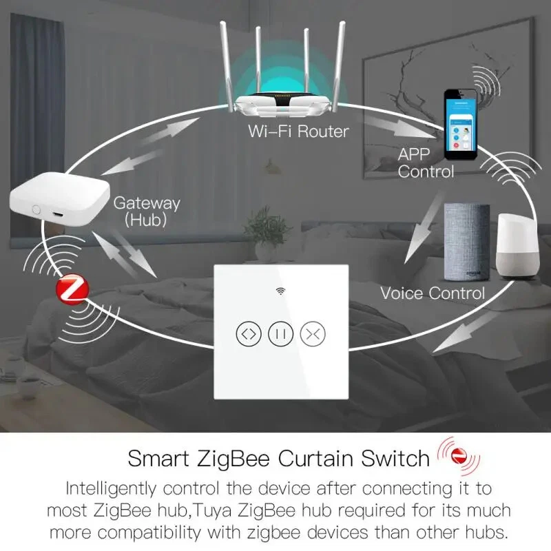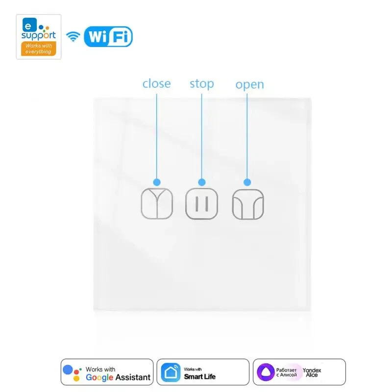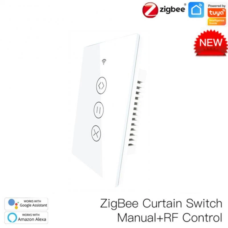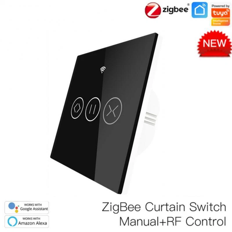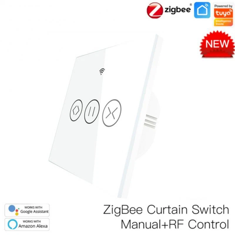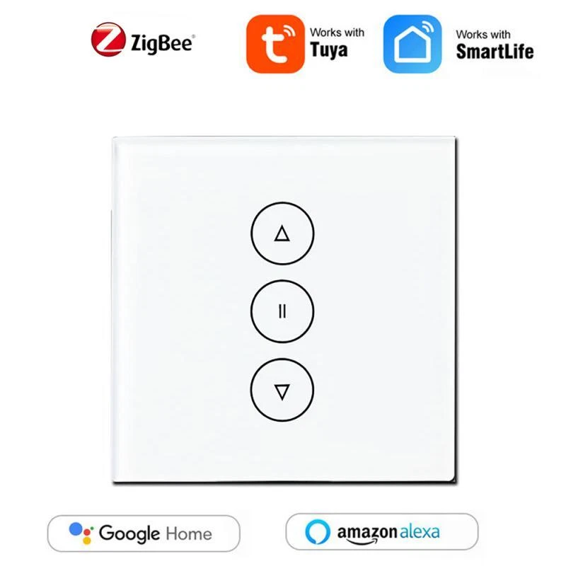 Tuya Zigbee WIFI Smart Curtain Switch eWelink RF Glass Panel Touch Switch Timing/Voice/Remote Control Via Alexa Google Home Description: Touch 86 switch, mobile phone remote control, AI voice control, touch panel operation, scene, timing, mobile phone delay, real-time status feedback. Support voice control, support alxea, Tmall Elf, Xiao Ai, google assistant, etc. Set the scene mode, no need to control each switch one by one This product needs to be used with Tuya zigbee gateway Specifications: Product name: smart switch Number of control channels: one open/two open/three open/dimming/fan/curtain Wiring mode: zero live wire Product color: white Product Specification: European Standard Control method: voice/mobile App/touch control Wireless type: 2.4G802.15.4 Base material: PC flame retardant plastic Working humidity: ≤80% Working temperature: -40℃-85℃ Maximum load current: 10A Service life: 100,000 times App application: Tuya Smart (Android/I0S) App control distance: Unrestricted, just have a network Input and output voltage: AC85V265V50/60HZ Single-channel load power: 500W/channel (capacitive) 800W/channel (resistive) Package Included: smart switch*1