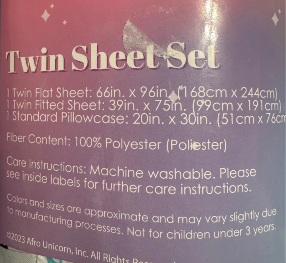 Twin Afro Unicorn Kids' Sheet Set Beautiful Multicolor Super Soft Sheets. Condition is New with tags. Shipped with USPS Ground Advantage.