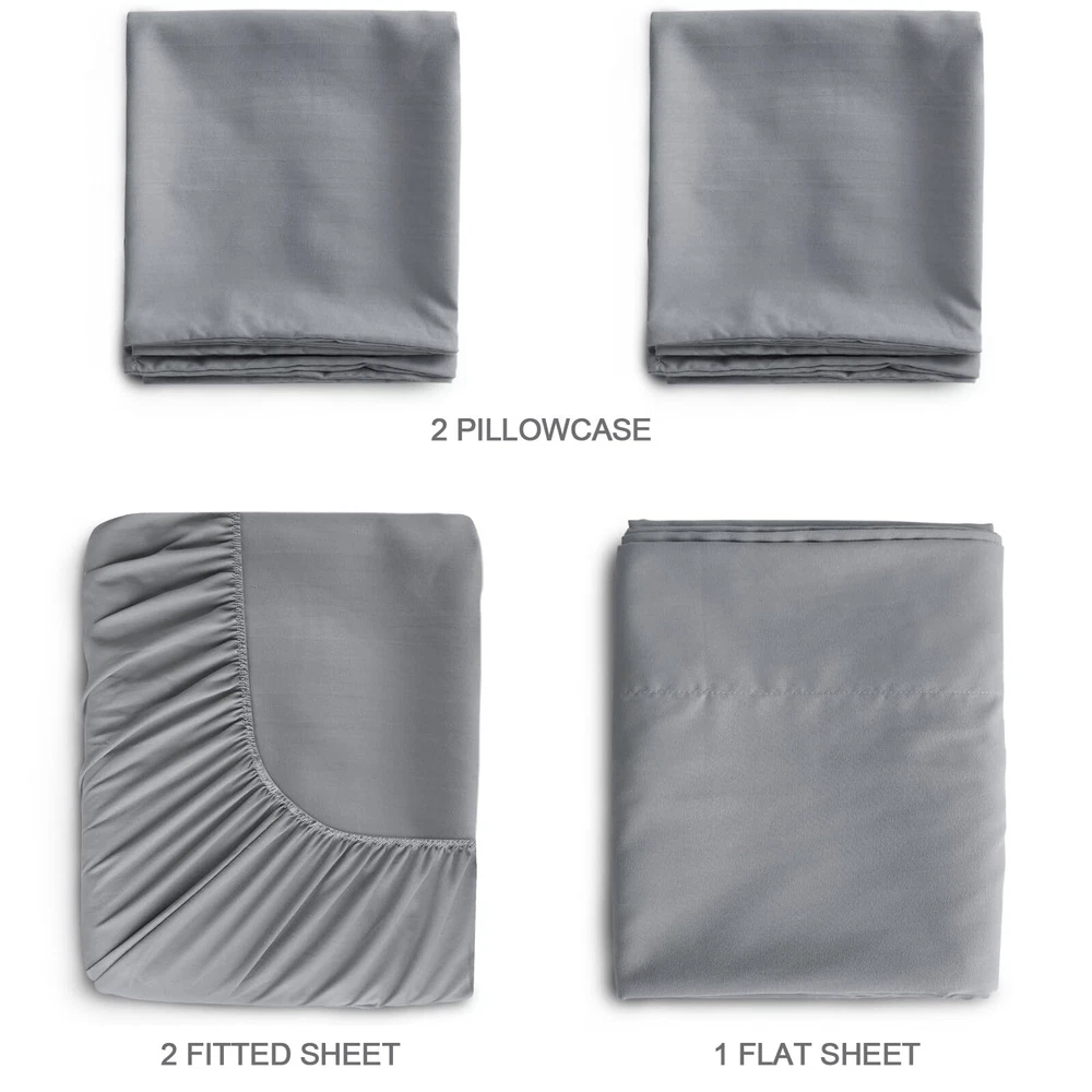 Twin Sheets Set, 4 Piece Bed Sheets Set Deep Pockets, Super Soft Twin Sheets, Breathable Twin Bed Sheets Set, Grey High Quality: The sheets set is made of high-quality microfiber, which is breathable, stretchy and silky soft. We will provide you a safe and comfy sleeping environment. 4 Piece Sleeper Sofa Queen Sheet Set Includes: 1 fitted sheet (38" X 75"), 1 Flat Sheet (66" x 96") and 2 Pillowcases (20" x 40"), Extra deep pockets grip and fit mattresses up to 15". 2 pillowcases give you convenience, while one is washed, the other comes in hand. All-around Elastic: We use high quality elastic band, which is elaborate and secure, making our sheets durable and long lasting. The All-around Elastic band to grip and fit the mattress better and to keep it in place all night long. Easy Care: We recommend you to wash the sheets set before using, which will be more soft and comfortable. The sheets set will not pilling, gentle wash to a max heat setting of 40℃/100℉, tumble dry low heat. Do not iron. Do not dry clean. Do not bleach. ’s Life-time Guarantee: Quality you can trust, if the sheet set does not meet your needs for any reason, replacement or money back, no questions asked!