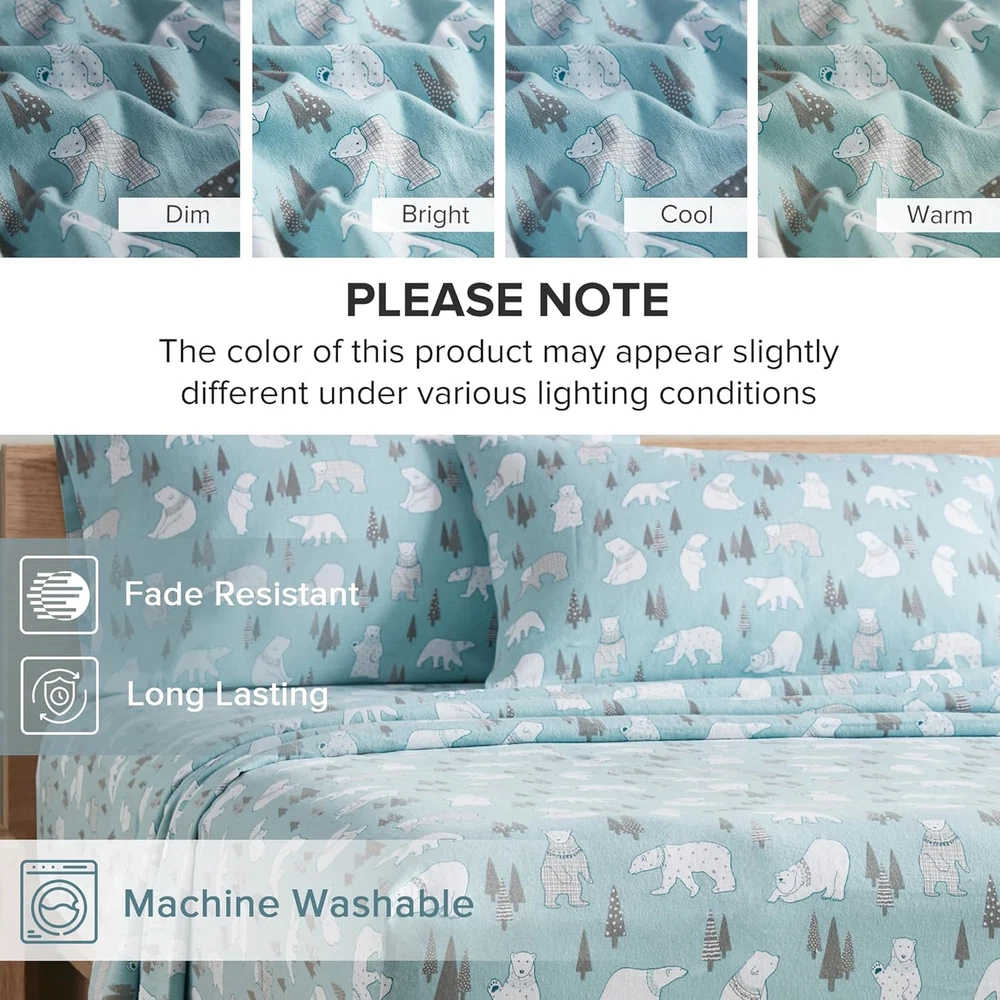 Fast Shipping Great Customer Support Satisfaction Guaranteed DESCRIPTION Shipping Shipping Shipping All domestic packages are shipped for Free (Unless other shipping method was selected during the checkout) Most items ship and arrive much sooner than the estimate delivery date. Usually within 2-3 days from payment. However, we have longer estimates to compensate for the occasional delay or supply chain breakdown. We do not accept P.O. BOXES - PLEASE PROVIDE A PHYSICAL ADDRESS Return Return Return In the event that you would like to return your purchase, we allow returns that are processed within the defined return date (the return date is to be found in the return policy/shipping and handling section) Please contact us for a return authorization and the return shipping address. Payment Payment Payment PayPal is our preferred method of payments it's the quickest, easiest and most secure way to pay for your goods or services online. PayPal offers buyer and seller protection should there be a problem. If you do not have a PayPal account, to get started and buy your first item with us is very easy. Simply click on the 'Buy It Now' button and follow the eBay checkout steps. Select PayPal as the payment method you then will be given the chance to enter your card details in to PayPal's secure checkout in order to pay for your order. Once the payment has been made, you will then be given the opportunity to make your own PayPal account to make paying for your items in the future very easy. Should there be a problem with payment please do let us know. Feedback Feedback Feedback Customer satisfaction is very important to us. If you have any problem with your order,please contact us and we will do our best to make you satisfied, please do not leave a negative feedback before we resolve your problem. We guarantee that your issue will be solved quickly. As long as you are happy with your purchase of , please leave us a positive feedback. Your feedback is very important to us it affects our search placement on eBay. We will leave a positive feedback for you in return automatically once we receive your feedback. Contact Us Contact Us Contact Us If you have any queries, please contact us via ebay. We usually respond within 24 hours on weekdays. Thank you for visiting our ebay store! EASY CARE: Do not Bleach. Machine Wash Cold, Tumble Dry Low. Lint is a natural by-product from the brushing process to create the soft and cuddly flannel fabric. To help settle the fiber, you may add a half cup of vinegar to the washing machine's wash cycle in place of detergent. After the first few washes, shedding should subside. Novelty printed cotton flannel sheet set will bring the joy and festive spirit in your home and right to your bedroom The flannel is manufactured in an OEKO-TEX Standard 100 certified factory, which ensures that the product has no harmful substance or chemicals. Set includes: 1 Flat Sheet: 68"W x 102"L, 1 Pillowcase: 21"W x 30"L, 1 Fitted Sheet: 39"W x 80"L + 12"D. Twin XL also fits for Split King bed. EASY CARE - Machine wash cold on gentle/delicate cycle, tumble dry on low heat. No bleach. Recommended to use 1/2 cup of white distilled vinegar for the first time washing to reduce lint and fuzz. Cozy bed starts with a comfy sheet set. Our Comfort Spaces cotton flannel sheet is soft and breathable and offers warmer property to make you feel extra cozy at night. The sheet set features adorable novelty prints that will brighten up your room. It also comes with OEKO-TEX Standard 100 certification ensuring no harmful substance or chemical is used and striving for quality comfort and wellness. It comes in 5 different sizes for you to choose from and it’s also conveniently machine washable. Twin XL Cotton Flannel Deep Pocket Sheets Set Blue Polar Bears 3 Piece Click here to see description Fast Shipping Great Customer Support Satisfaction Guaranteed DESCRIPTION Shipping All domestic packages are shipped for Free (Unless other shipping method was selected during the checkout) We ship within two business days of payment, usually sooner Standard FREE shipping takes between 3-5 business days Expedited shipping takes between 2-3 business days Overnight shipping takes between 1-2 business days We do not accept P.O. BOXES - PLEASE PROVIDE A PHYSICAL ADDRESS We Ship Globally using ebay's GSP, the item is sent to a logistic center in KY and shipped from there to the rest of the world. International customers are responsible for all duties and taxes Contact your local authority for questions related to the amount of duties or taxes you will be responsible for Return In the event that you would like to return your purchase, we allow returns that are processed within the defined return date (the return date is to be found in the return policy/shipping and handling section) Please contact us for a return authorization and the return shipping address. Please contact us for a Return Merchandise Authorization (RMA) number. We advise you to use a reputable carrier service when returning your goods. Please pack all returns appropriately. We ship globally Via eBay's global shipping program (GSP). Thus we don't cover returns for items shipped globally. Buyers returning such items will be refunded ONLY for the item's cost and not for the shipping. please check the Voltage information and make sure it matches the one in your country. In case it's not stated in the description, do ask us. Payment PayPal is our preferred method of payments it's the quickest, easiest and most secure way to pay for your goods or services online. PayPal offers buyer and seller protection should there be a problem. If you do not have a PayPal account, to get started and buy your first item with us is very easy. Simply click on the 'Buy It Now' button and follow the eBay checkout steps. Select PayPal as the payment method you then will be given the chance to enter your card details in to PayPal's secure checkout in order to pay for your order. Once
