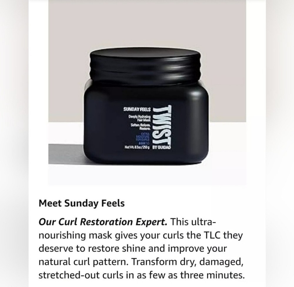Twist By Ouidad 4 In 1 Gimme It All + Sunday Feels Deeply Hydrating Hair Mask.... ☆Twist By Ouidad Sunday Feels Deeply Hydrating Hair Mask 8.5oz BNIB. •Restore shine and improve your curl pattern. Transform dry, damaged, stretched out curls. •Lightweight moisture replenishes parched curls. •Contains - Shea Butter, Coconut Oil, Jojoba Oil, Almond Oil and Grapeseed Oil. •Safe for color and chemically treated hair. ☆Free from mineral oil, petrolatum, parabans, phthalates, harsh sulfates and D4, D5, and D6 silicones. ☆Twist-by Ouidad-Gimme It All- 4-in-1 Hydrating Conditioner-16 OZ. BNIB. •Co-wash It: Remove product build-up and rehydrate your curls with this go-to that gives a quick moisture boost without stripping away oils. •Defy Damage: Transform damaged curls and create a moisture-balanced foundation to prevent frizz. Run through wet or damp hair. Leave in and go. •Define Curls: Rock any look. Use this as a styling cream to define curls, create twist-outs, or shape super-soft, sculpted curls. •Detangle: To keep curls moisturized and tangle free, use as a conditioner. Safe for color and chemically treated hair. •When your curls need hydration, this multi-use conditioner gets the job done. Quickly cleanse and condition in one rinse. For days when your style calls for a little more moisture, use this as your hydrating base to prep for styling. If curls are dehydrated and undefined, grab this and give your curls a twist •Rice Protein enhances natural volume and helps to soften brittle or damaged hair. •Panthenol seals moisture in and protects against environmental aggressors. •Capuacu Butter adds luster and shine to curls.. BNIB #twistbyouidad #ouidad #gimmeitall #conditioner #Hydrating #cowash #Discontinued #sundayfeels #hairmask #ultrahydrating #nourishing #hairproducts #hair #curlyhair #dryhair