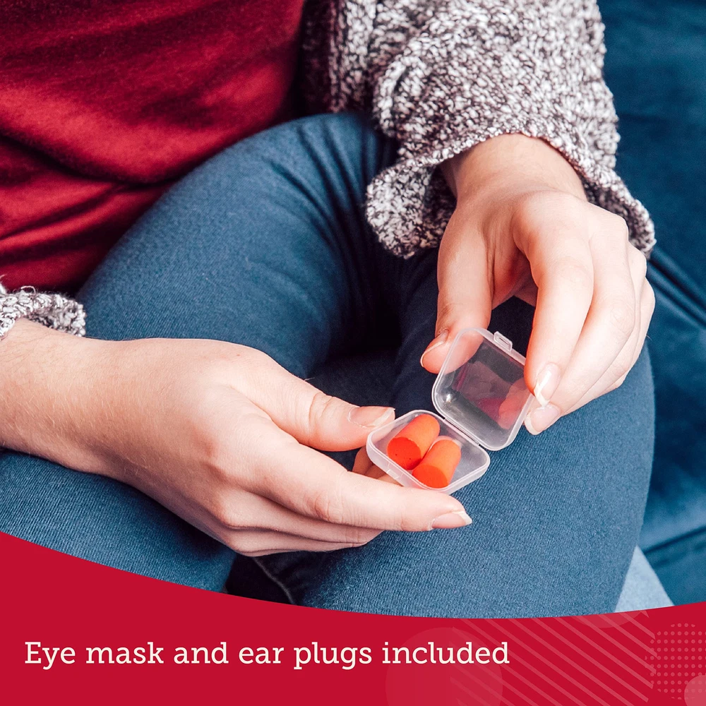 Custom Memory Foam Support: Memory foam rebound technology provides the perfect balance of support and softness, contouring to your head to take the strain off your neck and spine while you travel. Bendable Twist Design for Personalized Fit: A pliable inner spine allows you to wrap your pillow to fit any travel situation and holds its shape while you sleep! Use your pillow on car or airplane headrest as neck, lumbar, or leg support. Removable Pillow Cover for Easy Cleaning: Traveling can be messy. so a fast and easy-to-clean travel pillow is a must. The pillow comes with a removable cover that is machine washable and dryer safe! Attaches to Luggage Instantly: Forget trying to balance your , coffee, plane tickets, and travel pillow all at once. Never lose another travel pillow again! Neck Pillows attach to luggage with an easy-snap button for hands-free mobility. Comes with Eye & Ear Plugs: Includes a light-blocking eye and noise-canceling earplugs to help your body adjust to time changes and avoid jet lag. If you aren’t satisfied with your purchase, let us know and we’ll work with you until you are.