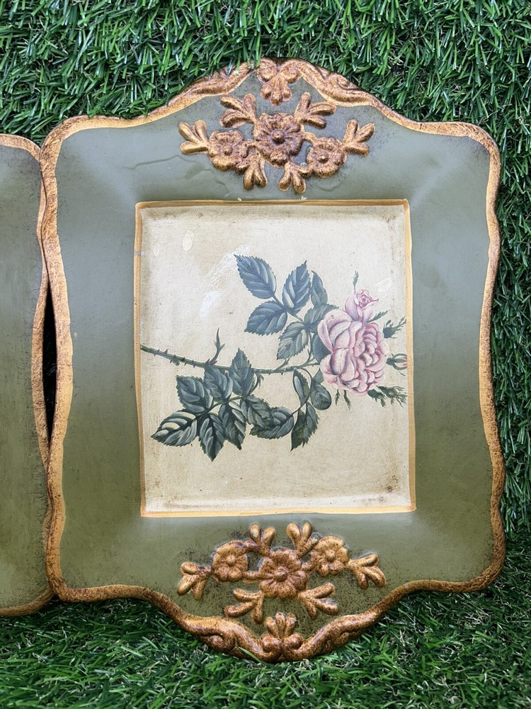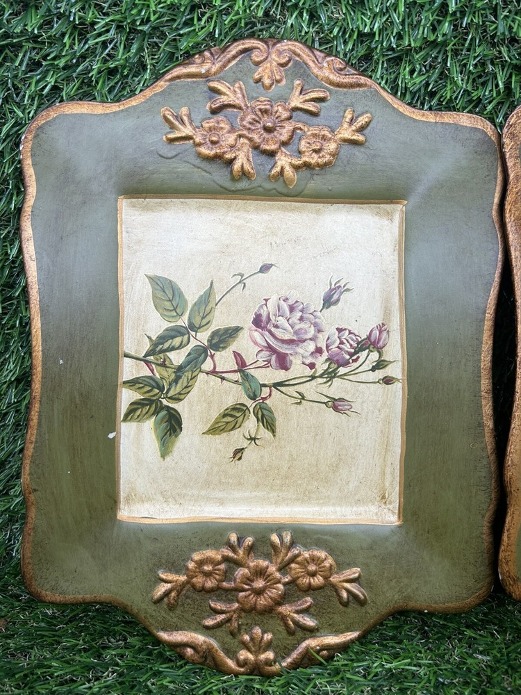Twisted Sisters Square Rose Plate Wall Decor Set Green Yellow 2-Piece
