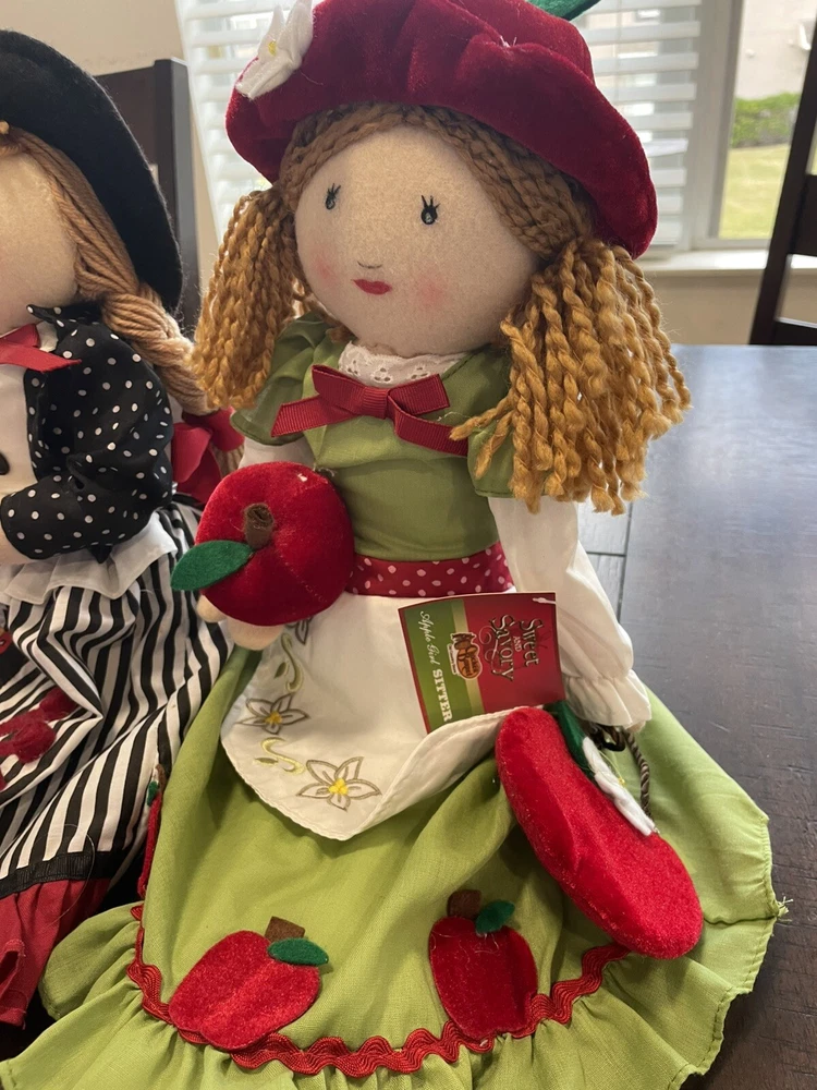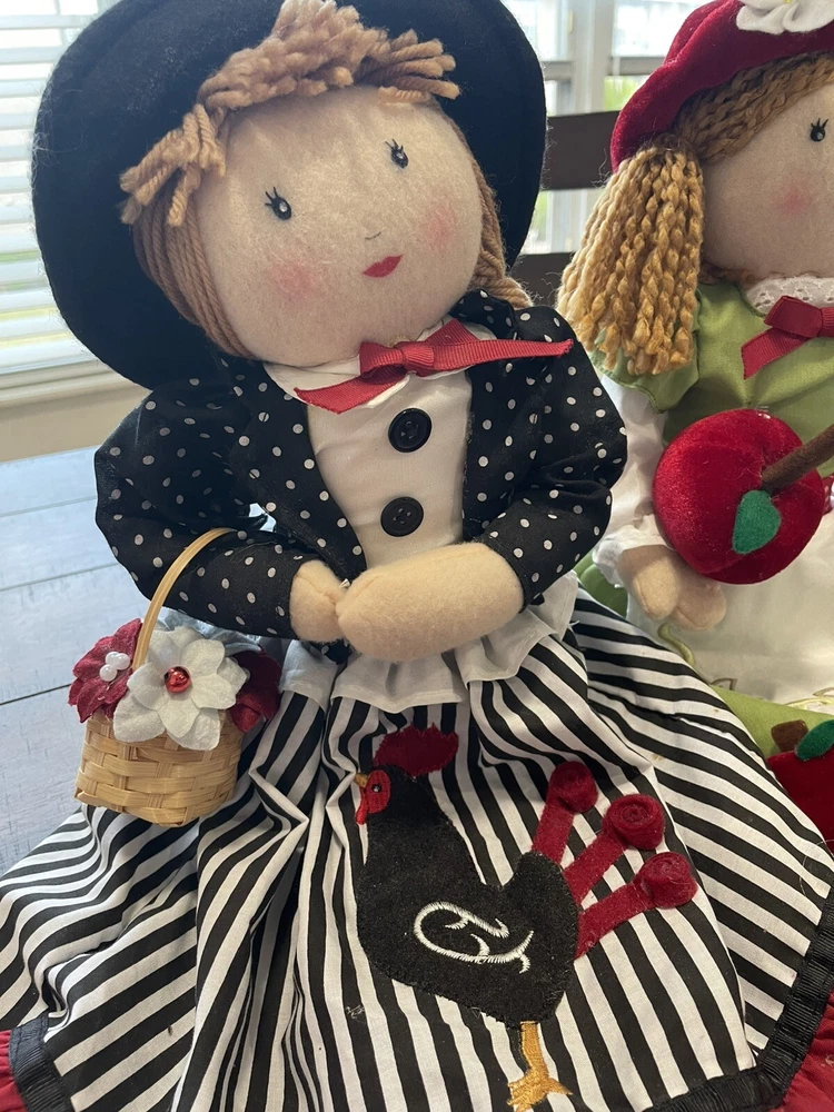 Two Cracker Barrel Rag-Doll Shelf Sitter Rooster Chicken Apple Annie w/tags