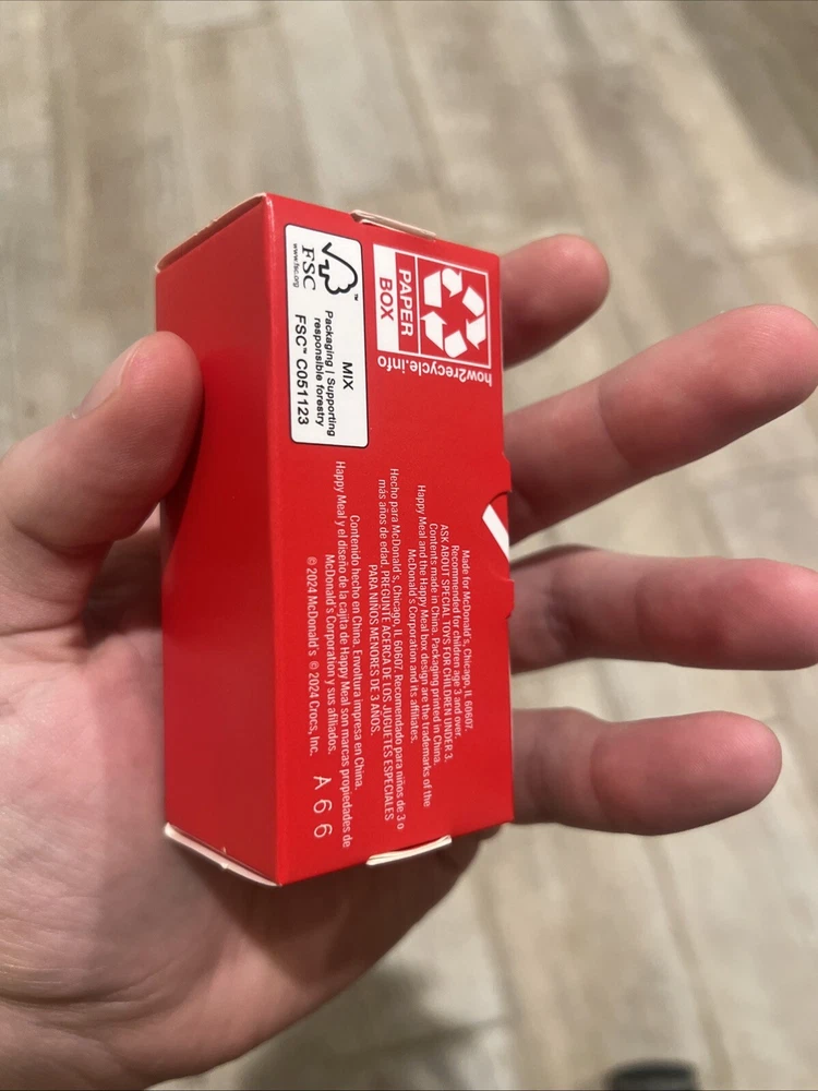 This product consists of two mini Crocs from McDonald's Happy Meal promotion, featuring a design based on the character family of Crocs. The specific item is numbered 3 and showcases a new smile design. These mini Crocs are likely collectible toys or promotional items that were given out as part of a McDonald's Happy Meal in the year 2024. The product reflects a collaboration between McDonald's and the popular Crocs brand to offer a fun and unique toy for children.