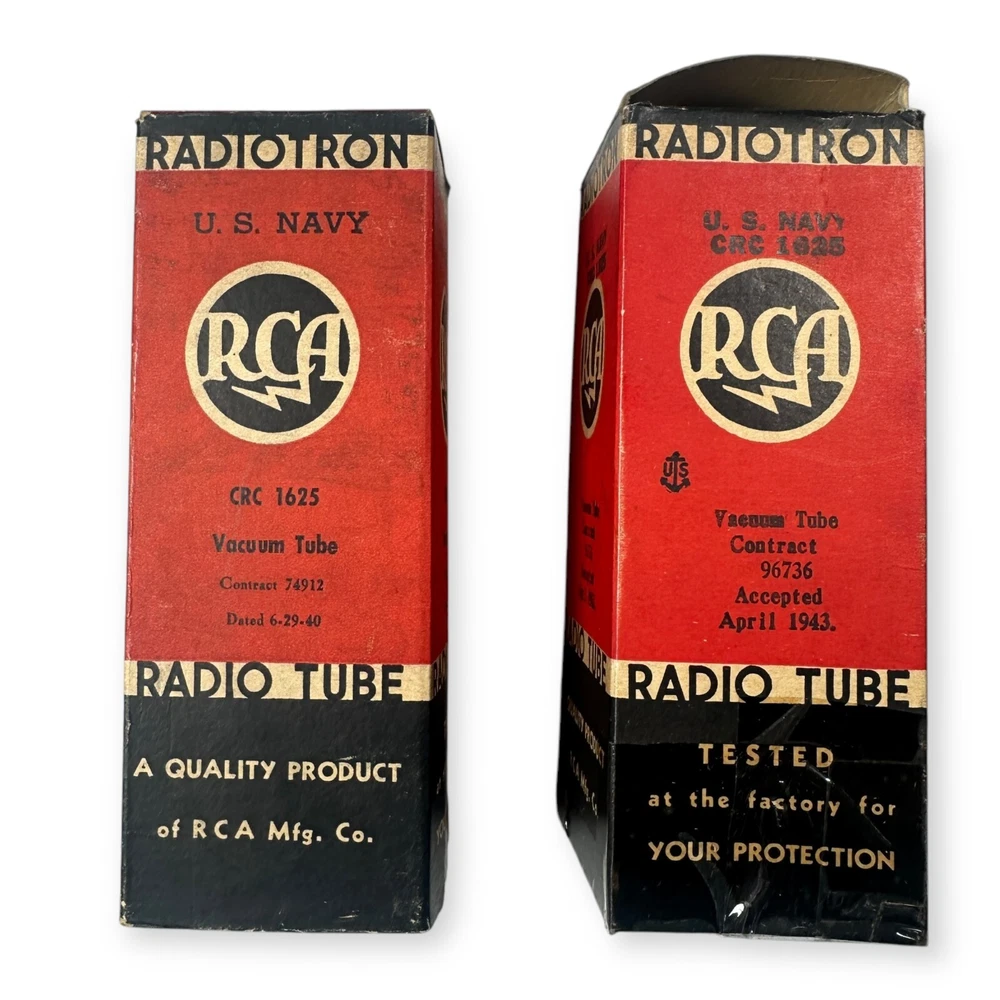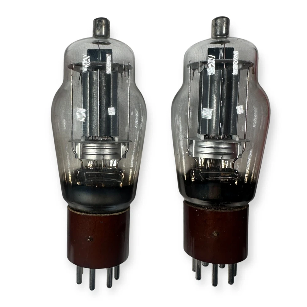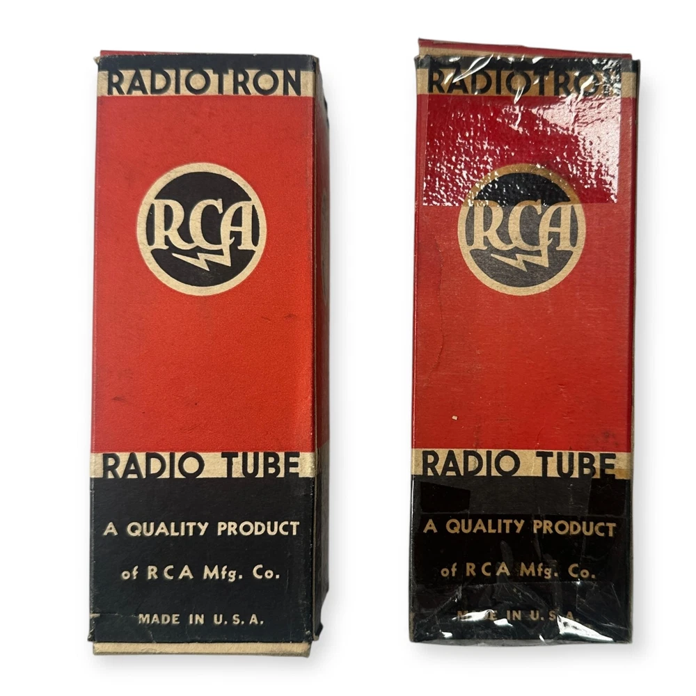 These tubes are new in box (NIB) and have not been tested. One of the boxes has been taped over. These were found at an estate sale neatly organized with various other NOS tubes. They are older stock and may have accumulated some dust over time, which can be cleaned if desired. The original boxes show signs of age, including possible wear or discoloration. Tubes appear to be in excellent cosmetic condition, with no visible damage to the glass or pins. Due to their untested nature, they are sold as-is . Please review all photos carefully for additional details. These are NOT a matched pair.