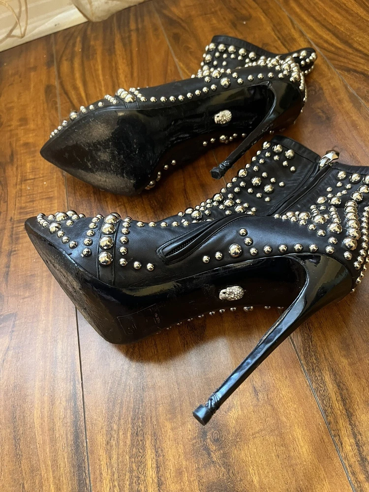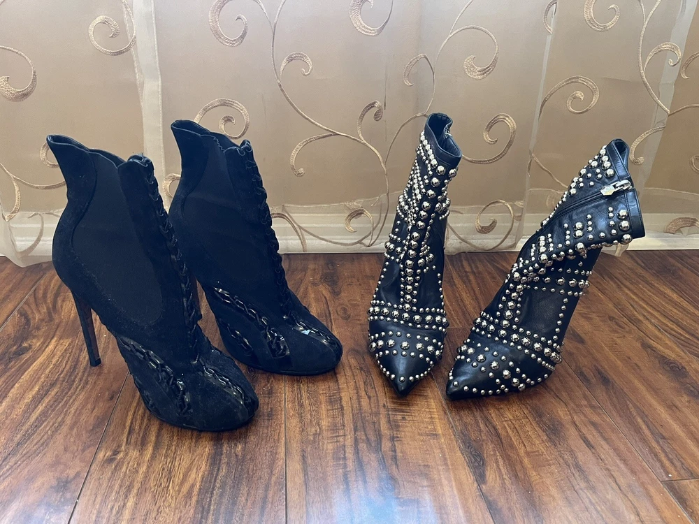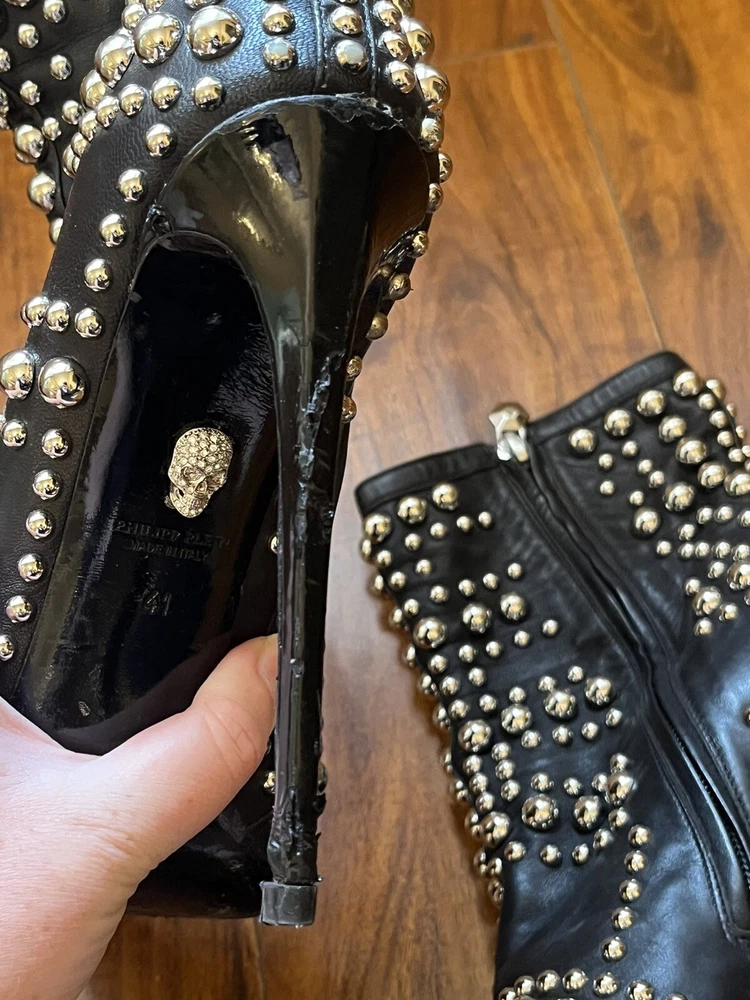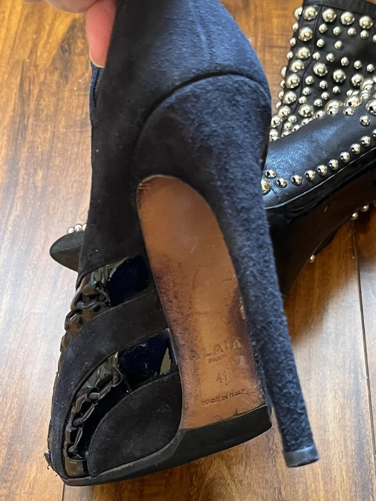 Two Pairs Of Heels (Alaia & Philipp Plein) PARIS HILTON allegedly Owned (READ!!). Hi! The story is that Paris Hilton left these shoes to be repaired at a cleaners a few years ago, but never picked them up. After some research, I was able to find photos of her wearing both shoes. They are also on the size google says she is. Of course I can’t grantee anything, but the signs are pointing to the story being true. The shoes were well loved.