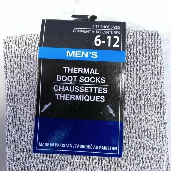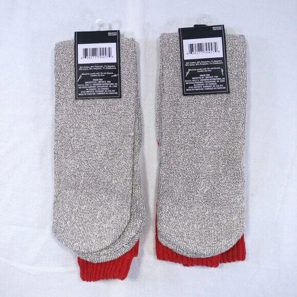 Two Pairs Mens Color: Gray and Red Thermal Boot Socks Feels Soft Thick Material Not Thin Size: Fits Shoe Sizes 6-12 Material: 55% Cotton, 44% Polyester, 1% Spandex New With Tags