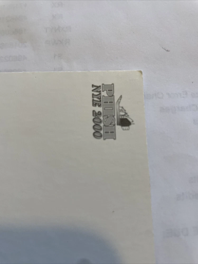 This rare Phish Y2K postcard from the year 2000 features the iconic band performing at the Big Cypress Florida festival. The postcard is a must-have for any music memorabilia collector, especially those who are fans of Phish and rock & pop music. The card captures the essence of the band's live performances and is a great addition to any collection.